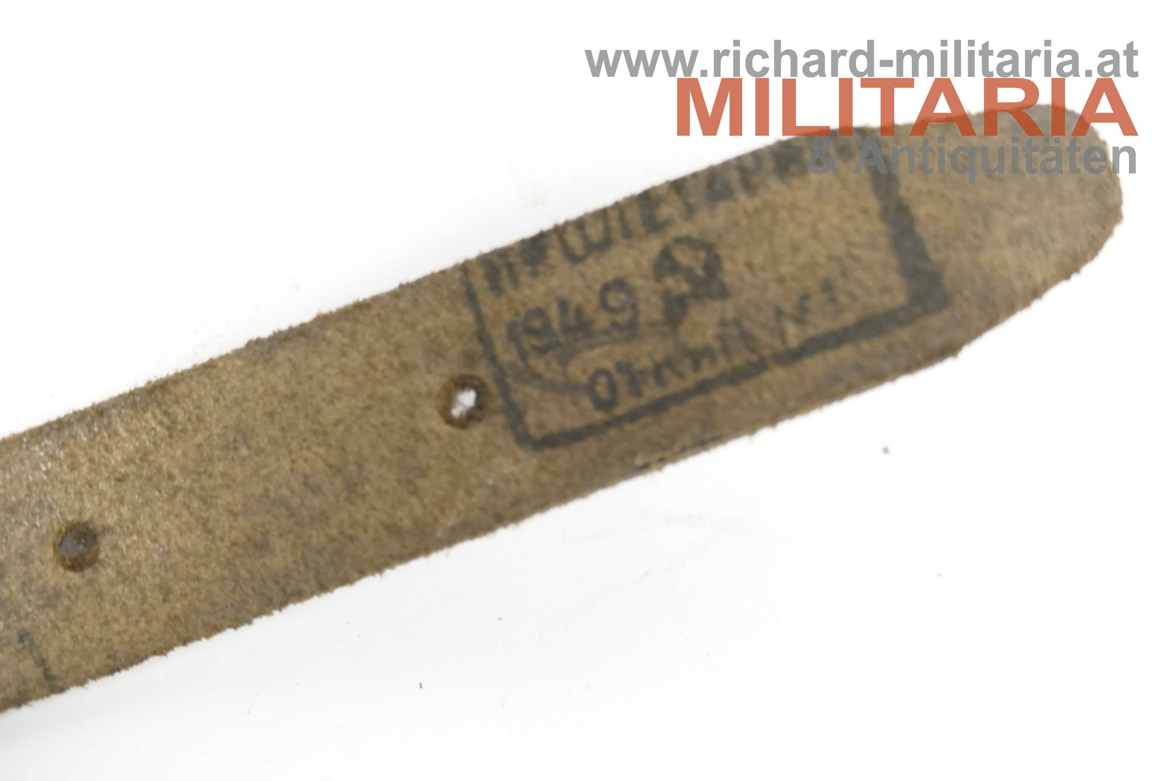 Sowjetunion - Webriemen zur PPs43 - 1949; brauner Webstoff undeutlich gestempelt; eine Lederlasche auf der Rückseite mit "1949" gestempelt;