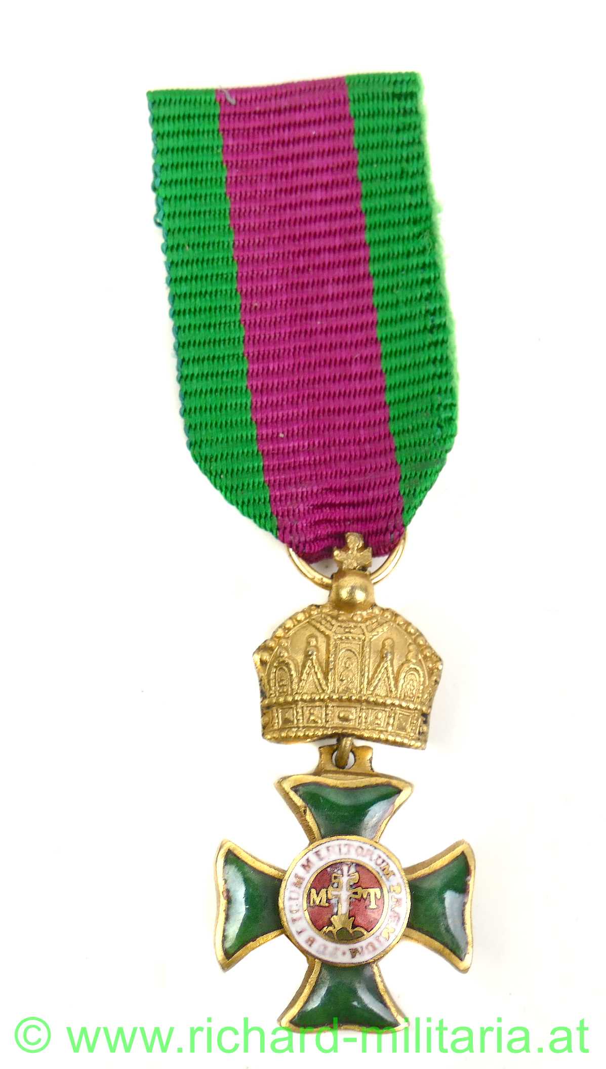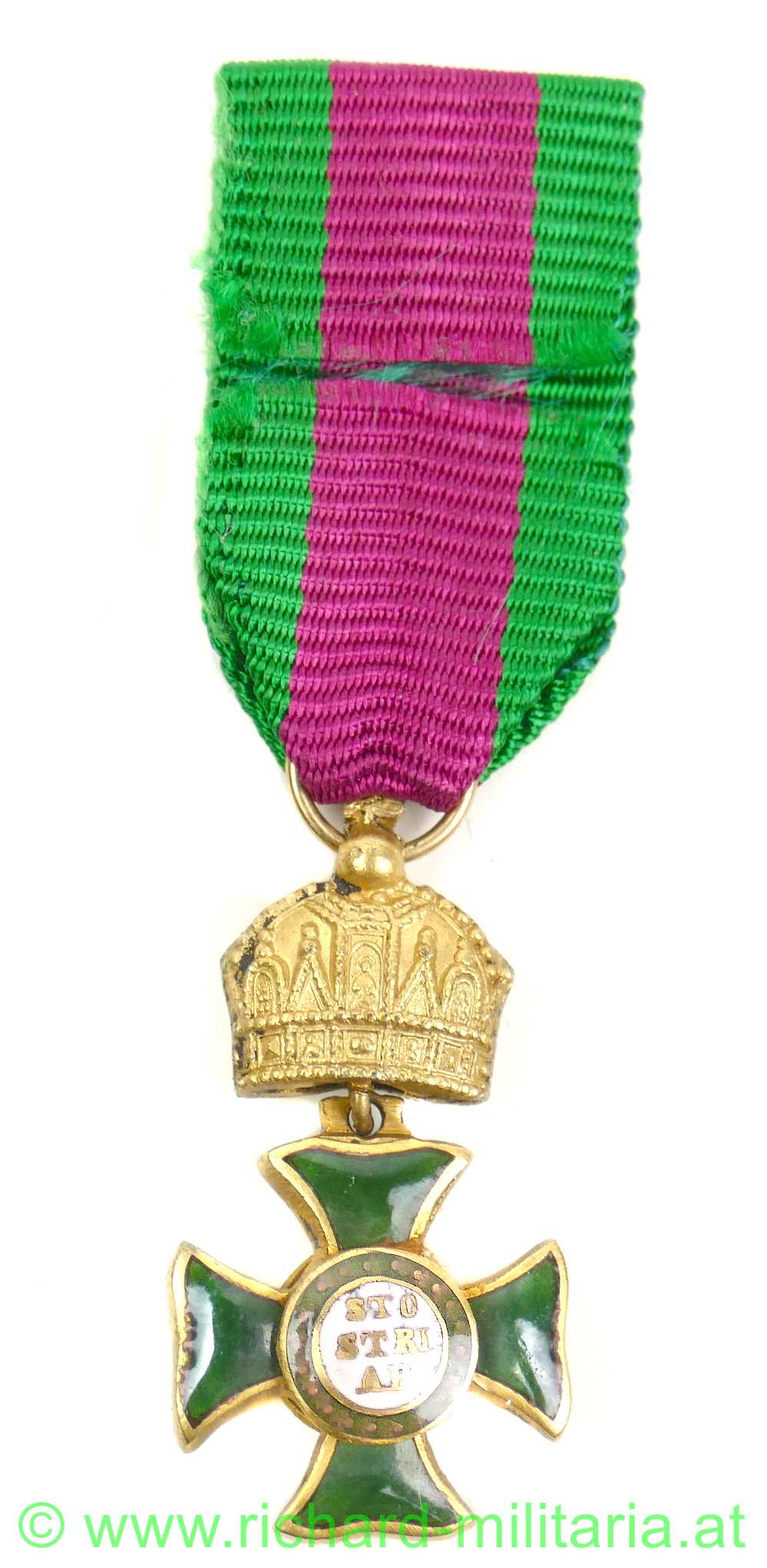 St. Stephan-Orden - Ritterkreuz - Miniatur, bewegliche Krone; feinst emailliert und sehr plastisch ausgeführt; unpunziert, originales Band,
