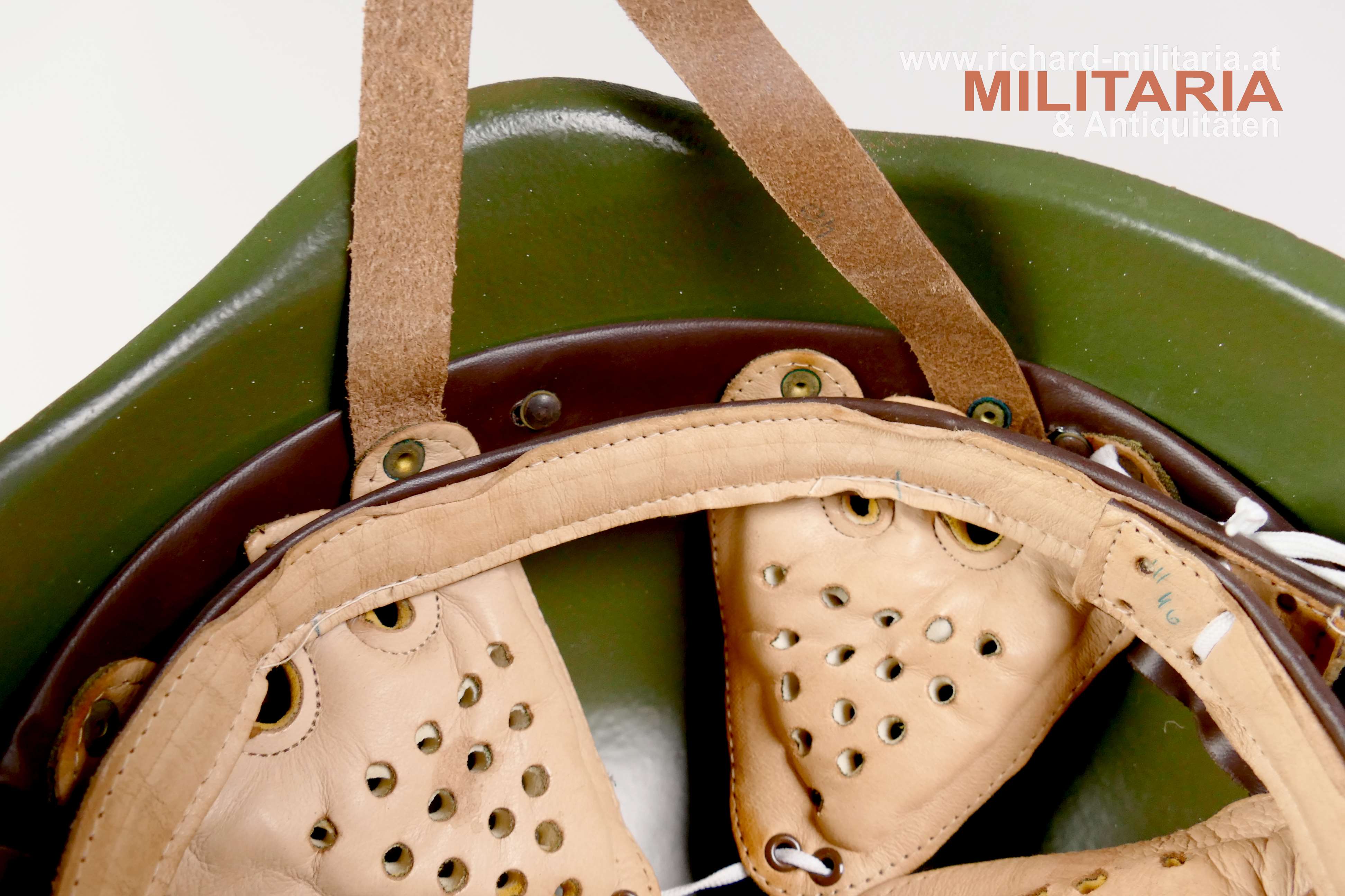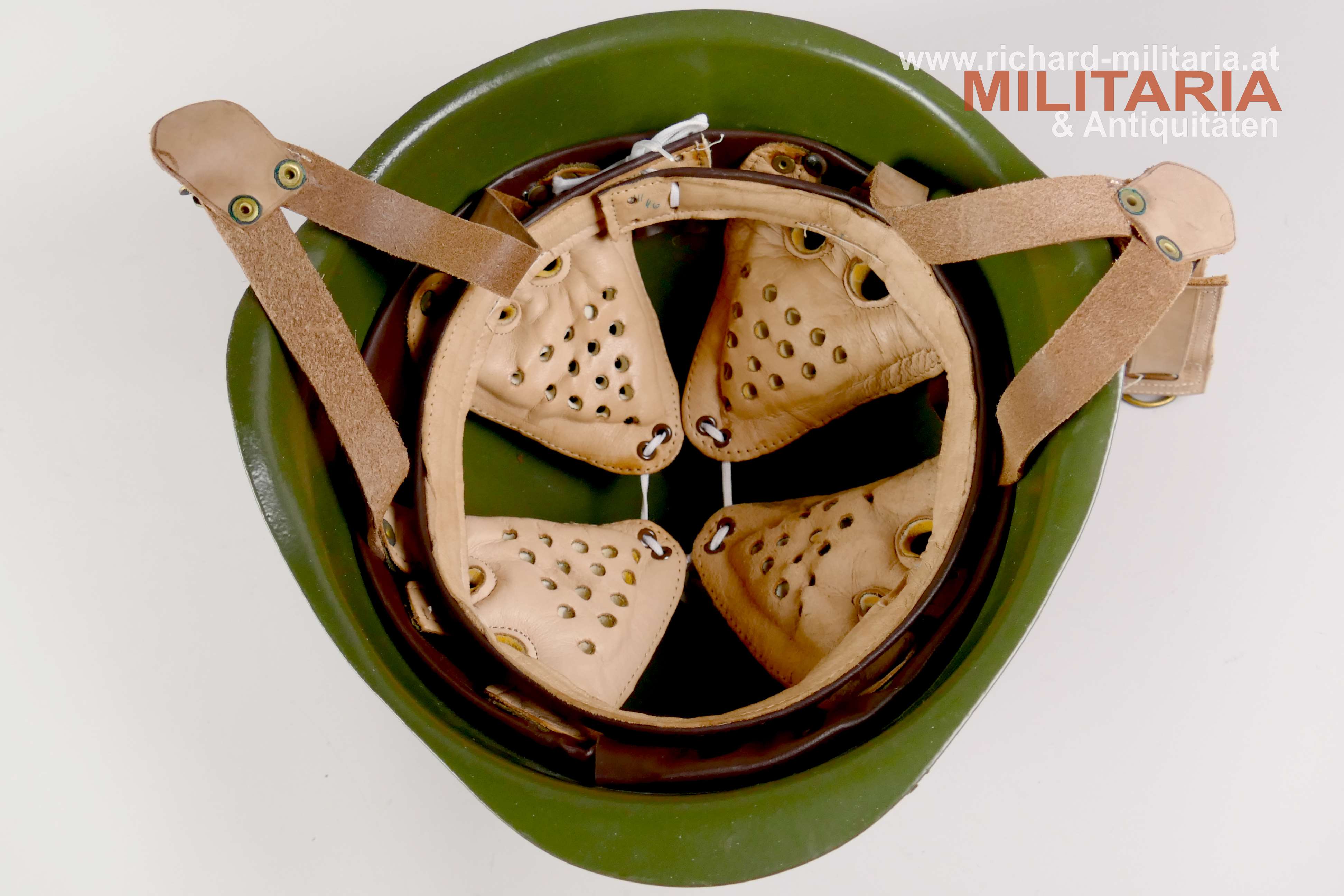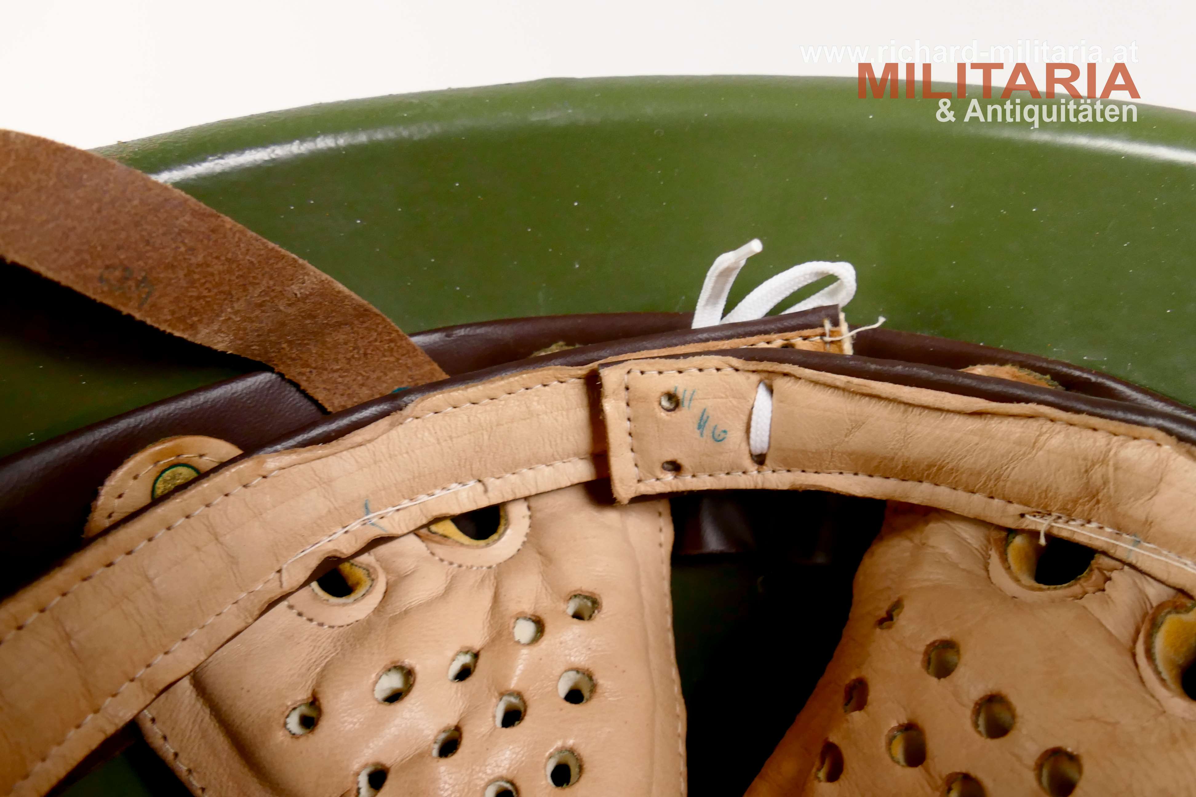 Stahlhelm Ungarn M70, feldgrau lackierte Stahlhelmglocke, verstellbarer lederner Innenhelm mit Y-Kinnriemen ebenfalls aus Leder; ungetragener Zustand;