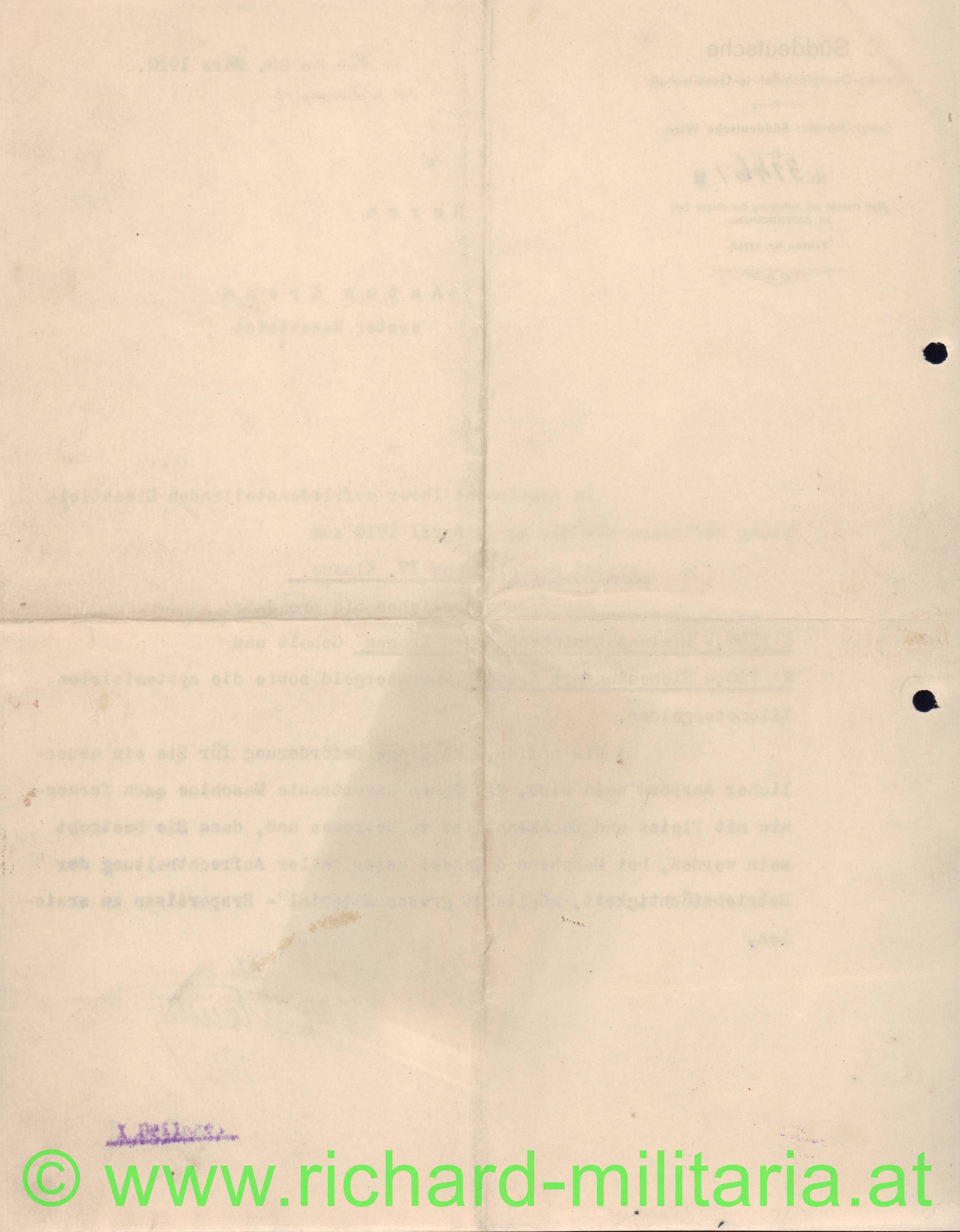 - Beförderungsbrief zum Ersten Maschinisten II. Klasse vom 19.12.1919