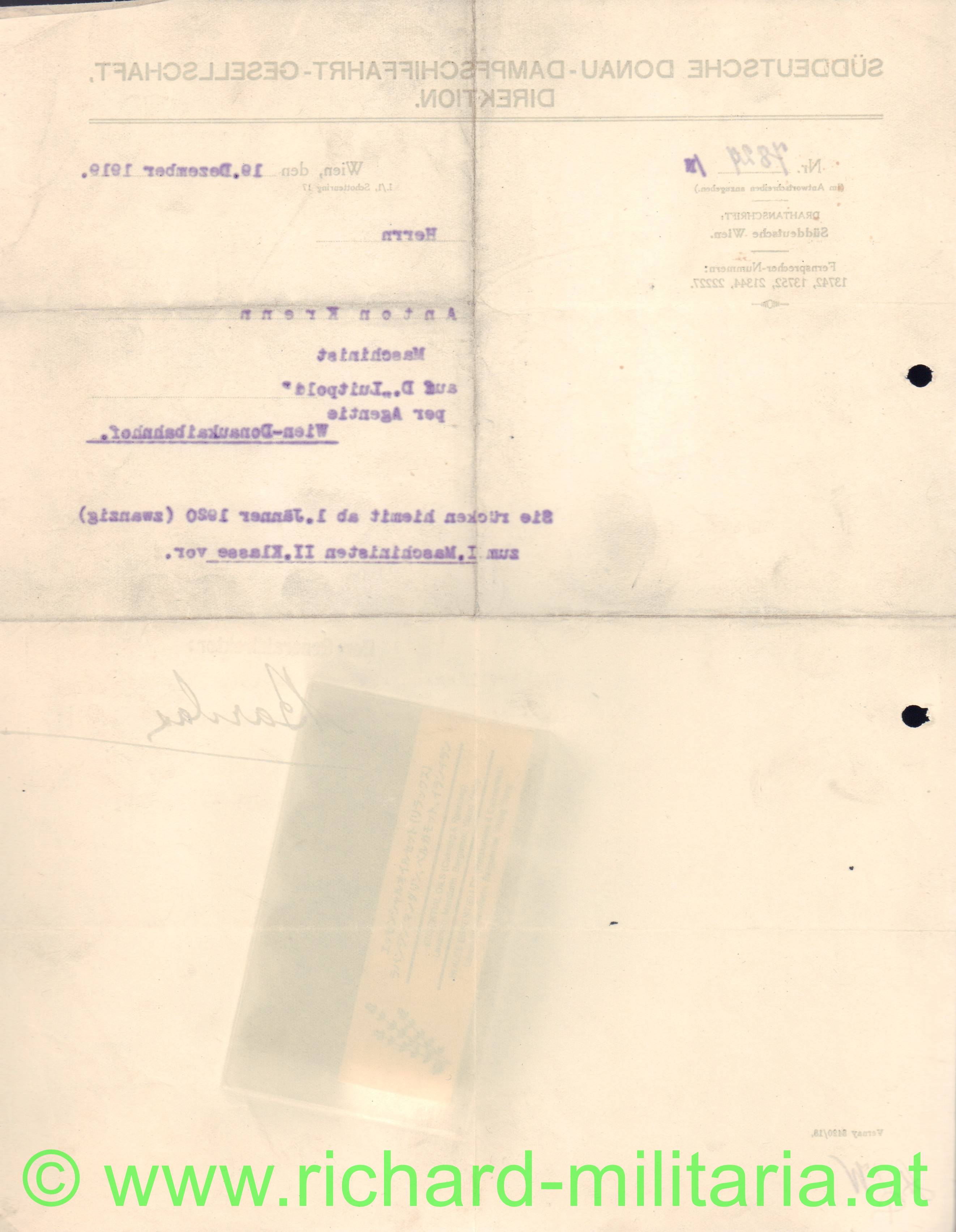 "Süddeutschen Donau Dampfschiffahrt-Gesellschaft" - Dokumentkonvolut