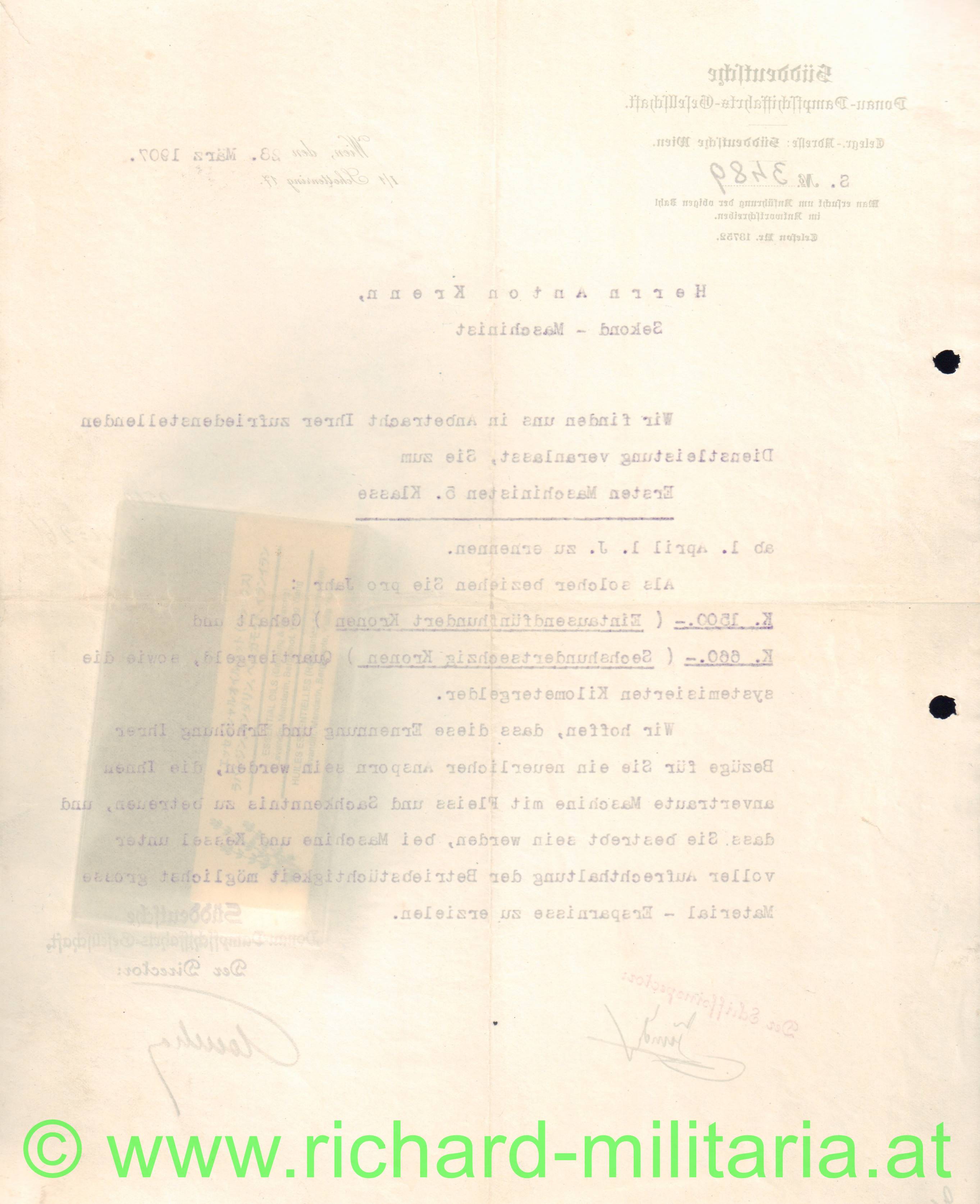 - Beförderungsbrief zum Ersten Maschinisten 5. Klasse vom 28.3.1907