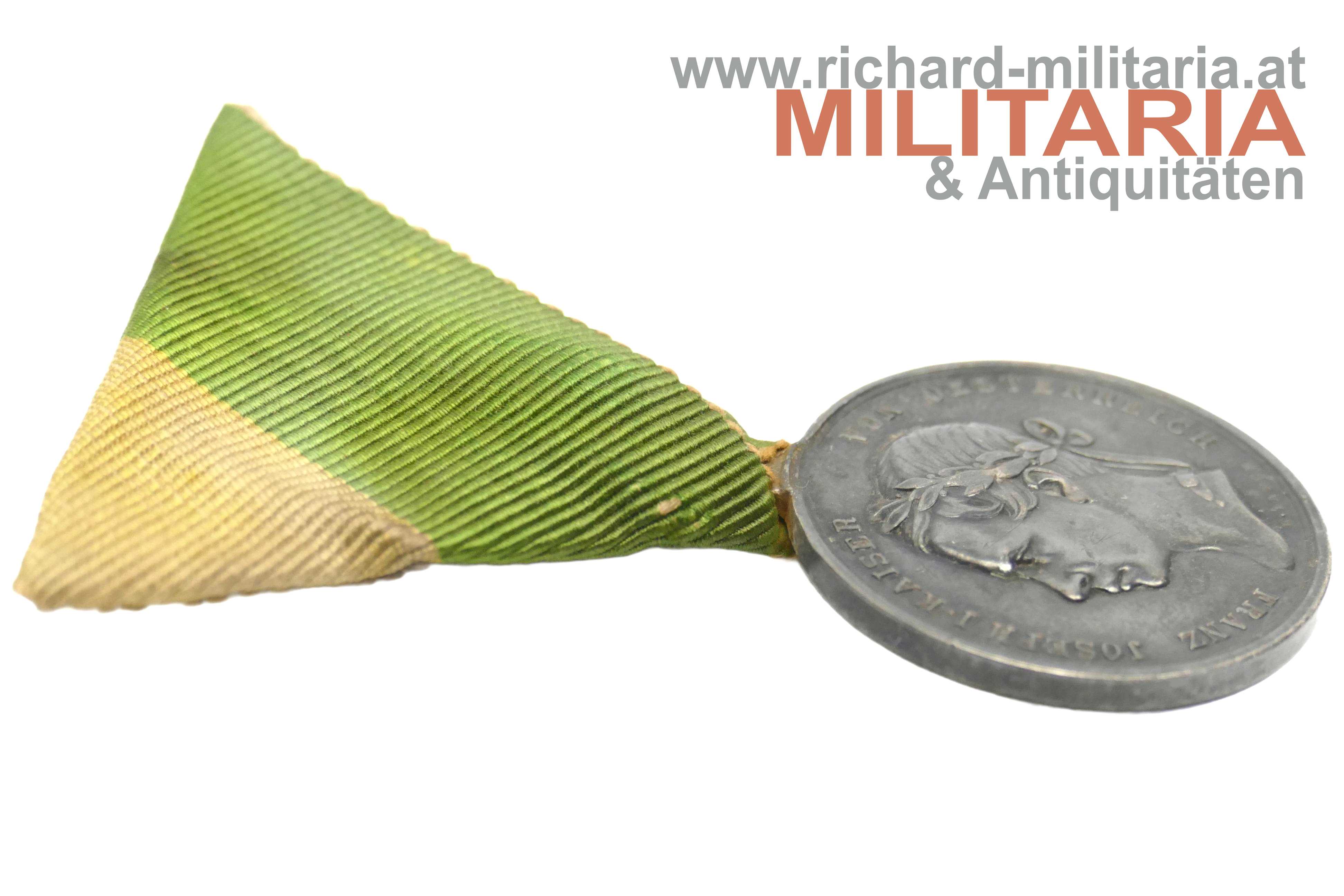 Tiroler Landesverteidigung Denkmünze 1848; Silber mit sehr schöner dunkler Patina; originale Henkelöse; an Dreiecksband (um 1900);