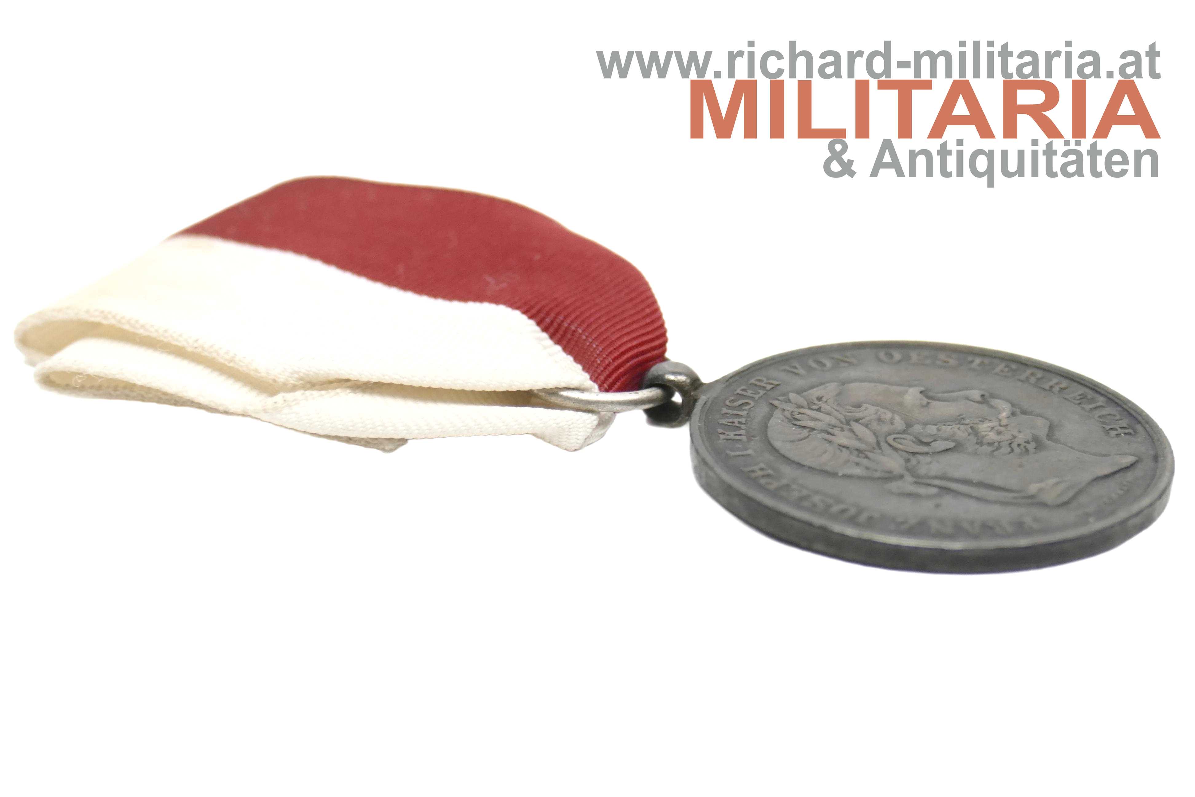 Tiroler Landesverteidigungsmedaille 1866; Silber dunkel patiniert; mit passendem aber späterem feinem Seiden-Bandabschnitt - (Blaulichttest negativ);