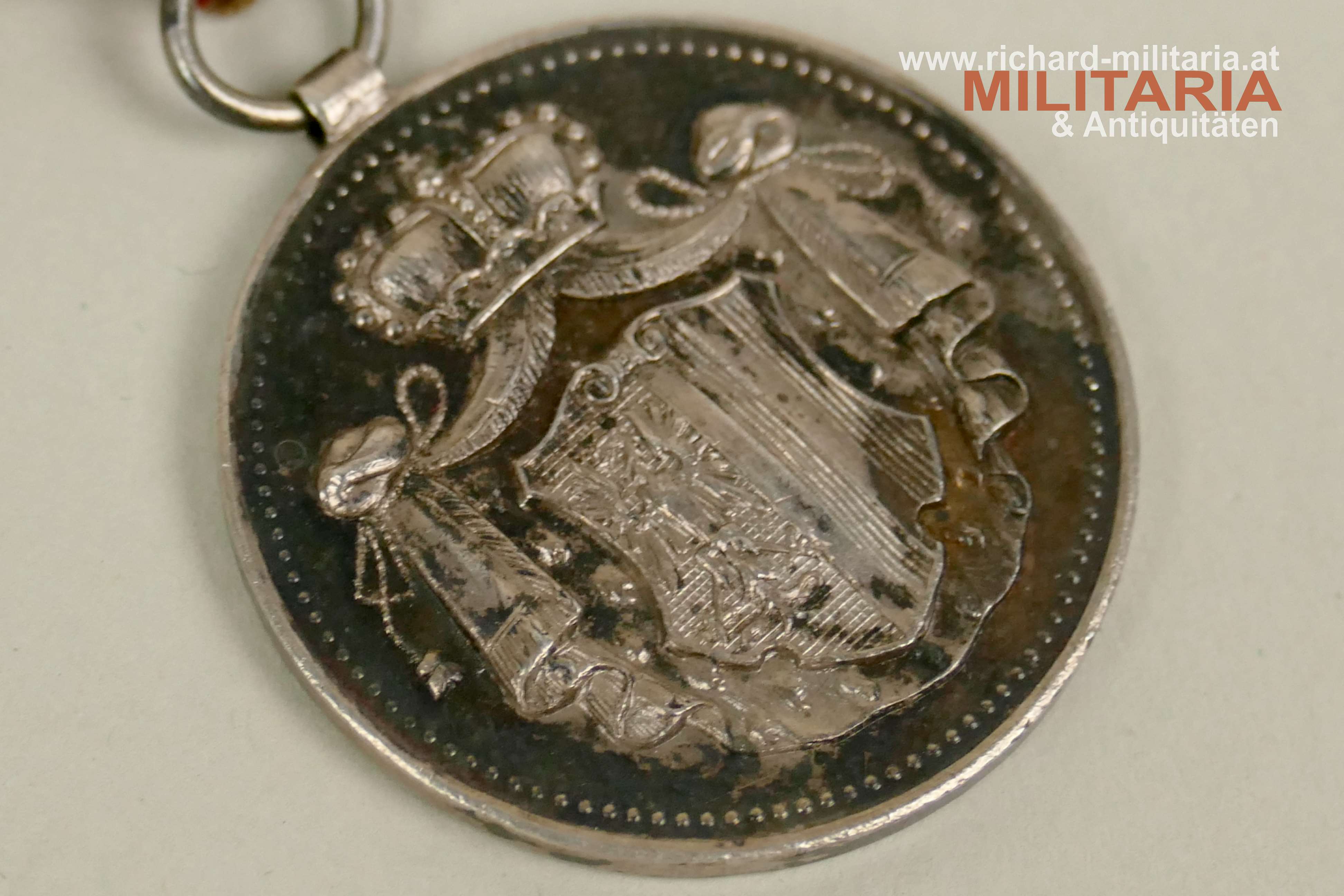 Treuemedaille der Stadt Linz "Für Fleiß und Treue"; 1. Typ; mit originalem Band; schöne Patina; Randpunzierung "900" "J.C." und Silberpunze; DM ca.: 30 mm.