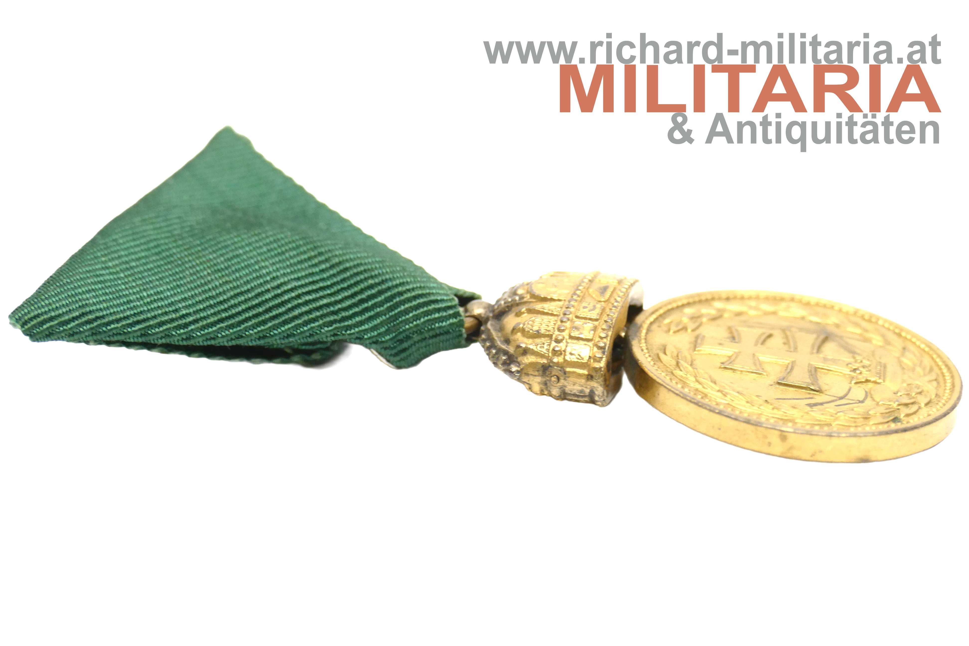 Ungarn - Signum Laudis 1922; Bronze vergoldet; Randpunzierung "BRONZ"; am zugehörigen neuzeitlichen grünen Dreiecksband;
