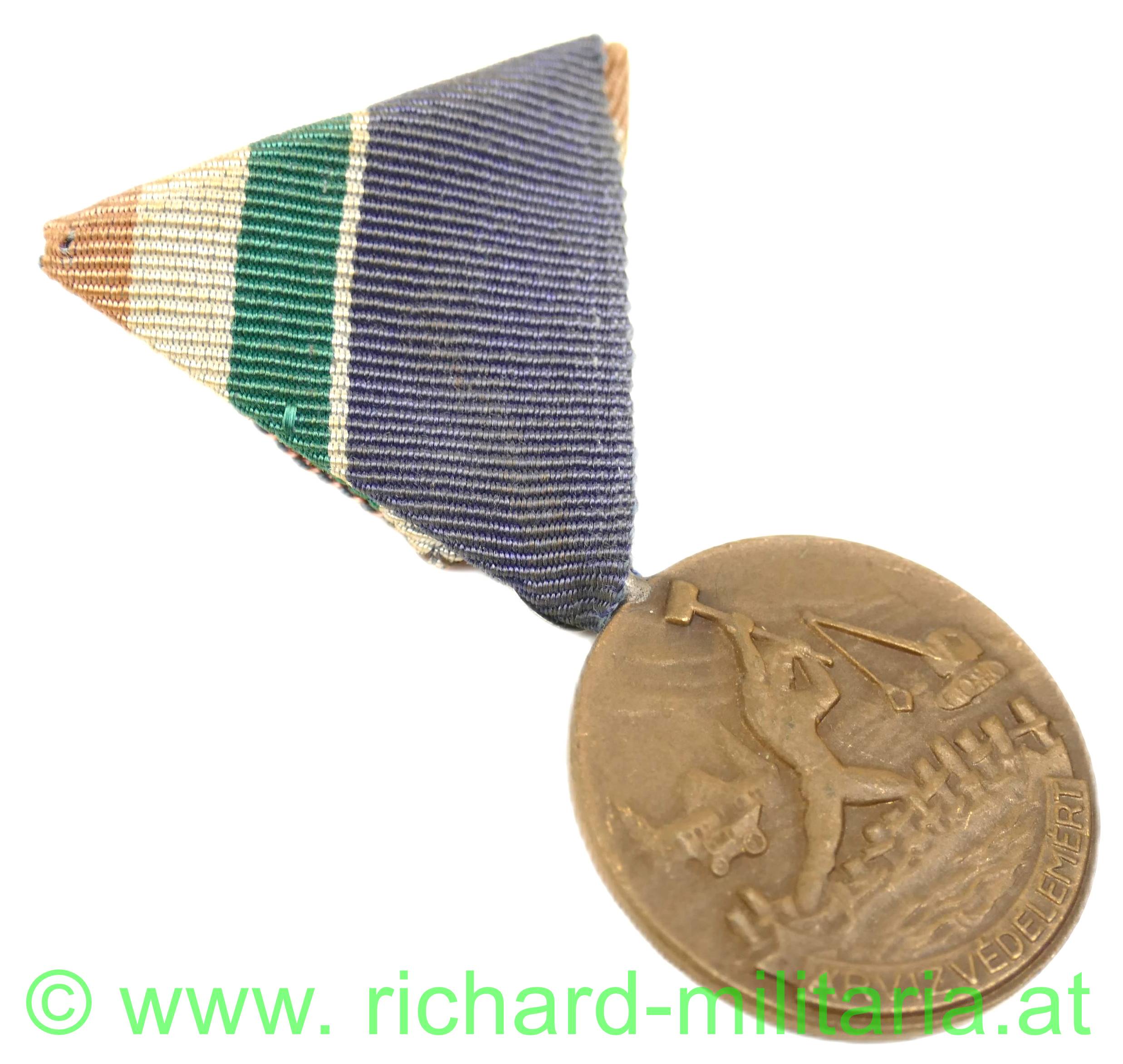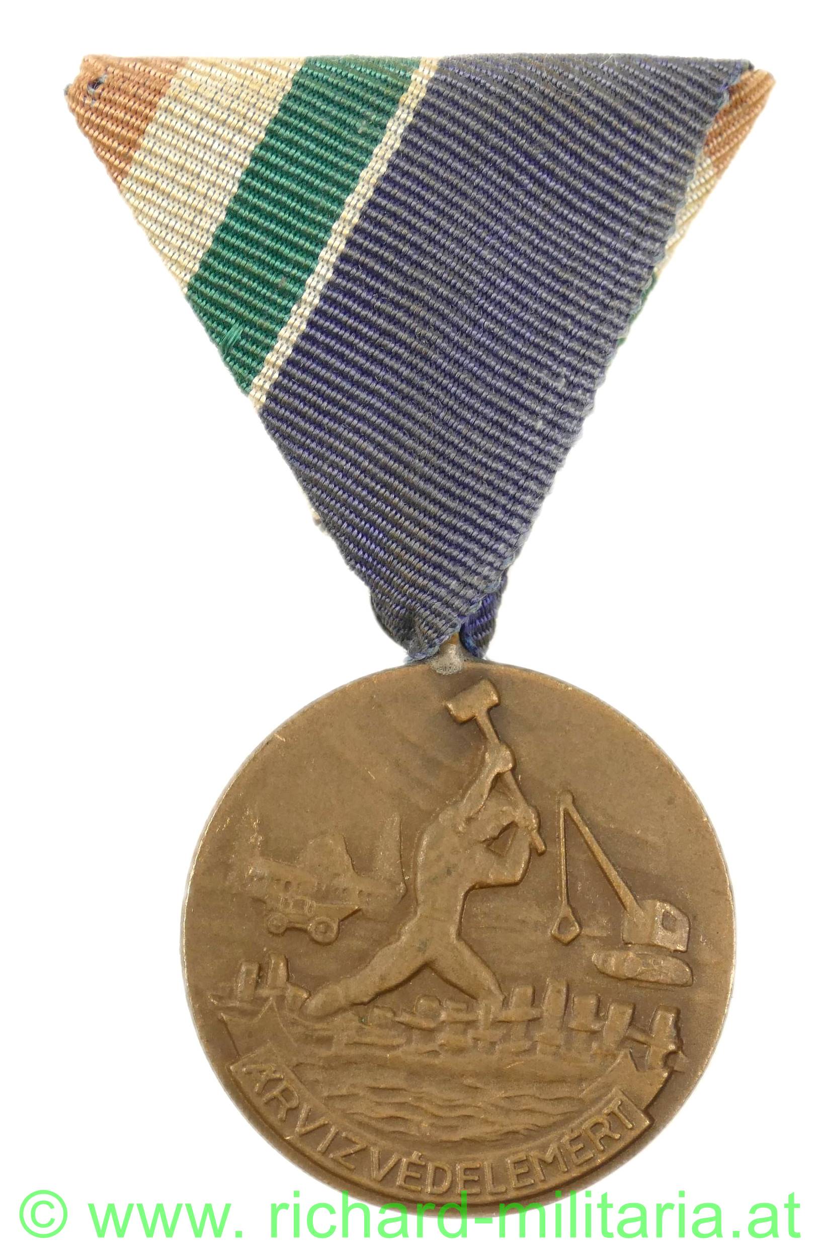Ungarn - Verdienstmedaille für Hochwasserschutz, Bronze, am dazugehörigen Dreiecksband,