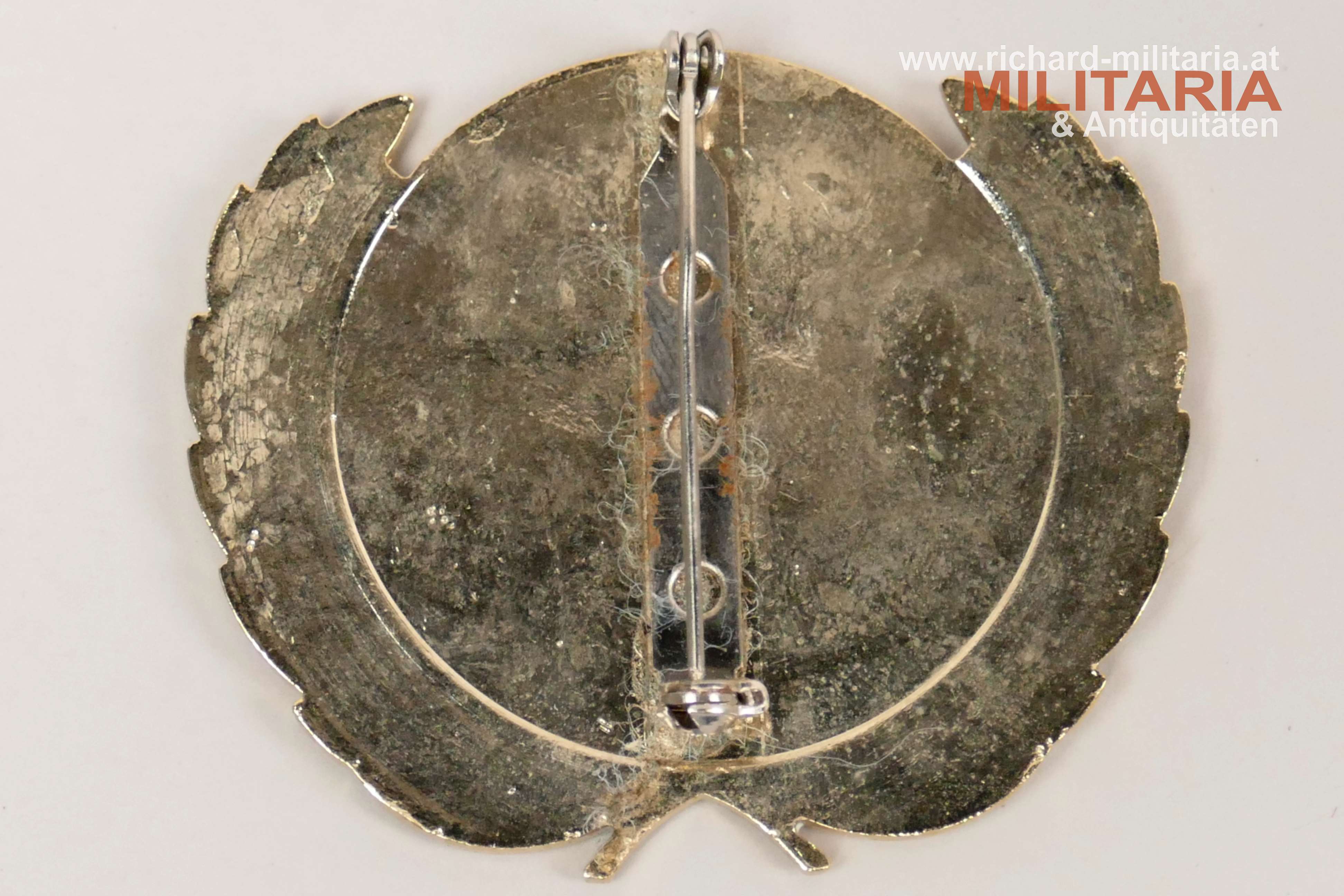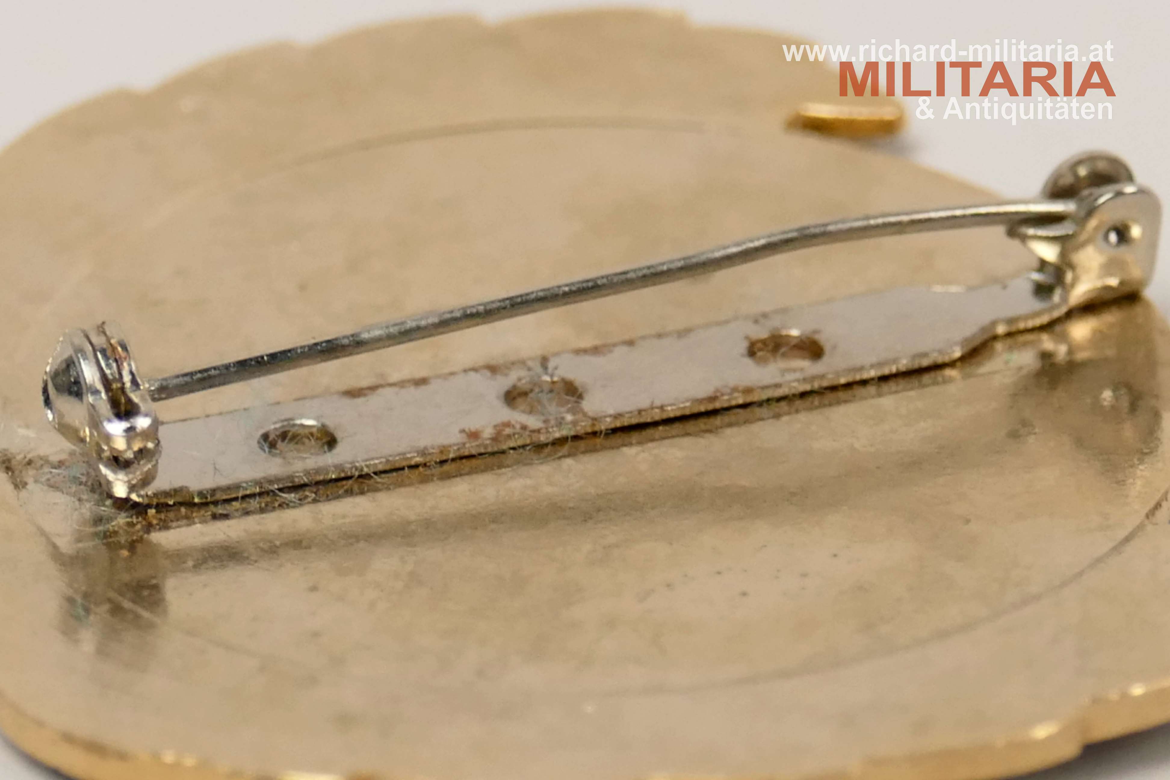 UNO - Barettabzeichen, Tombak vergoldet - teilweise emailliert, originale Tragenadel; Abmessungen ca.: 55 x 47 mm