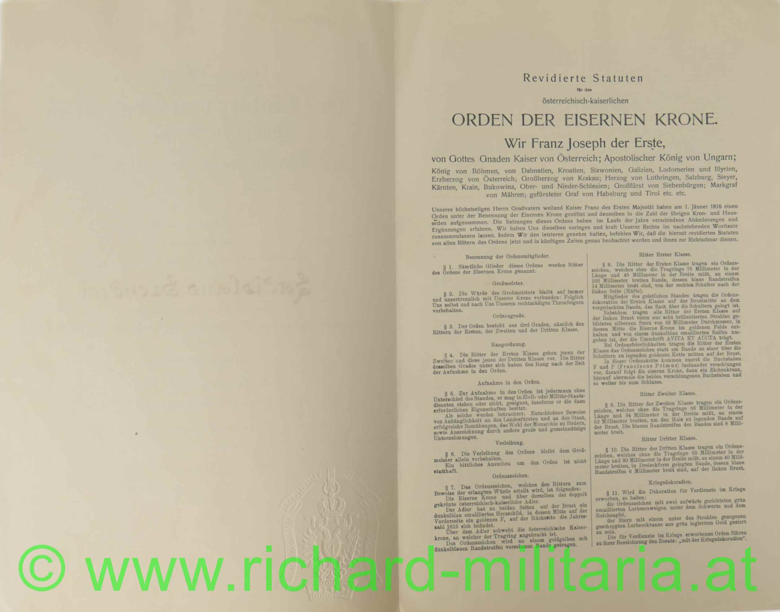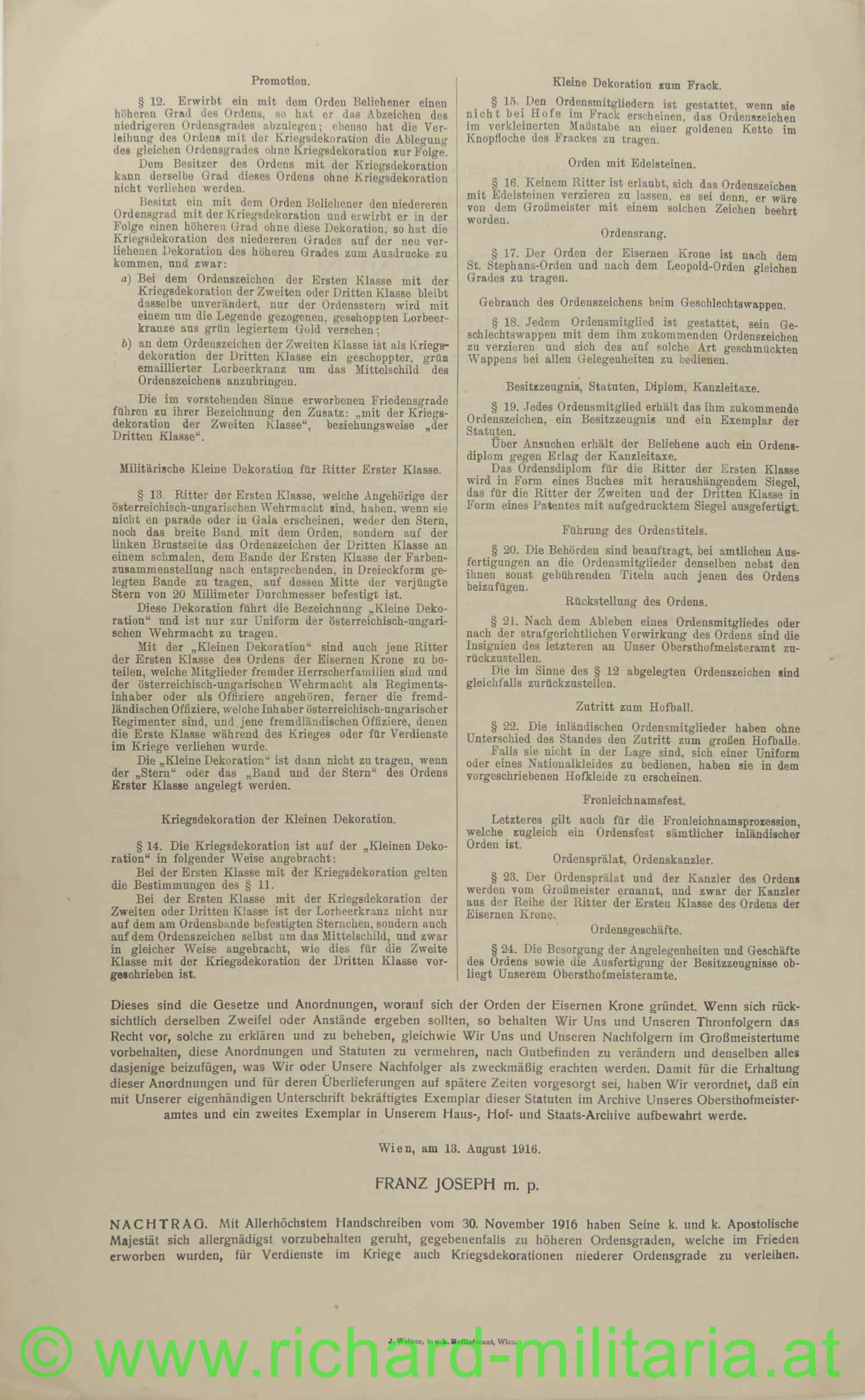 Produktinformationen "Urkunde - Orden der Eisernen Krone 3. Klasse - Olt. Szendrei Fliegerkomp.- No. 30"