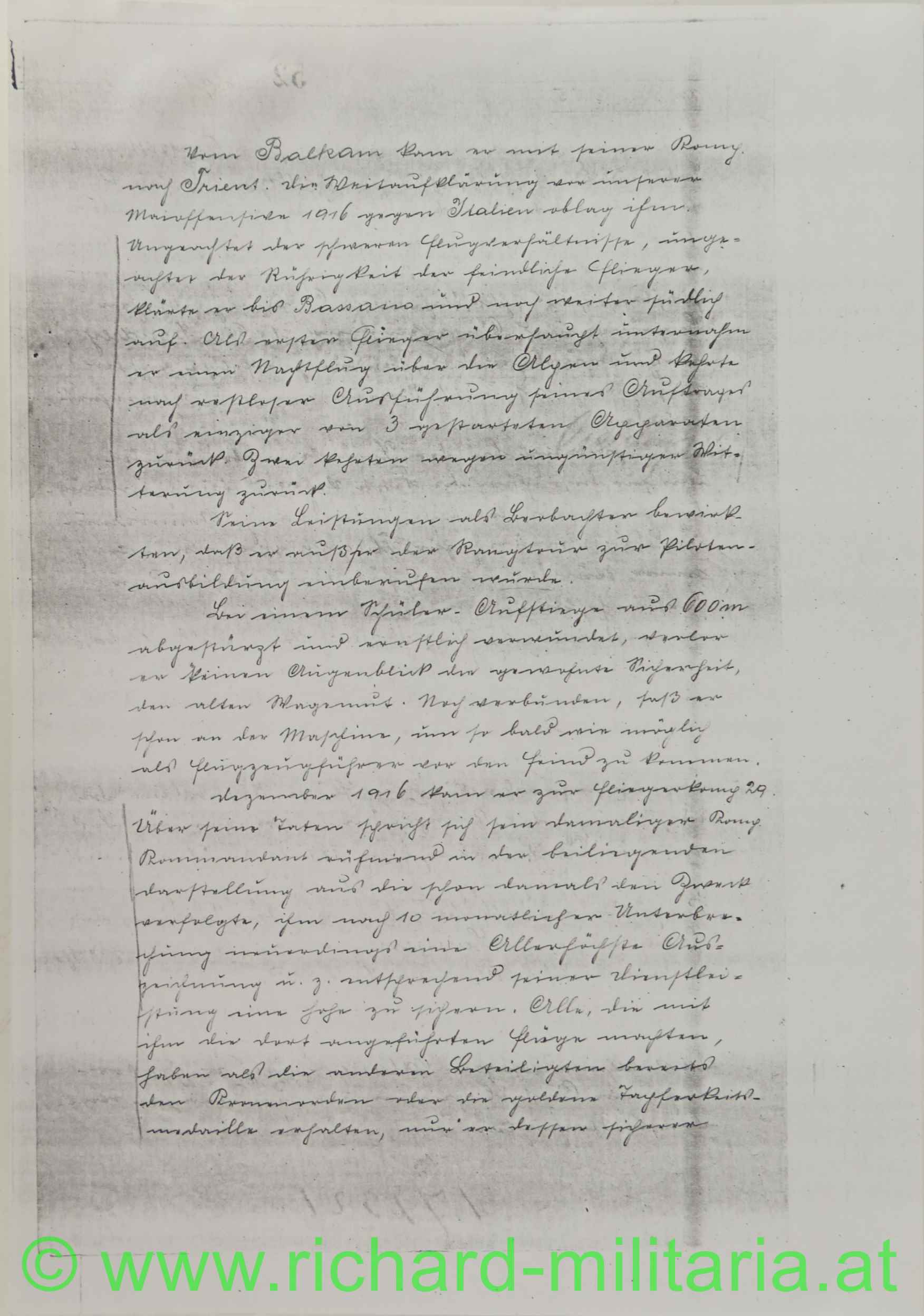 Sehr seltene Urkunde eines k.u.k. Fliegers (!) mit der ausführlichen Beschreibung der zu grundeliegenden Taten!