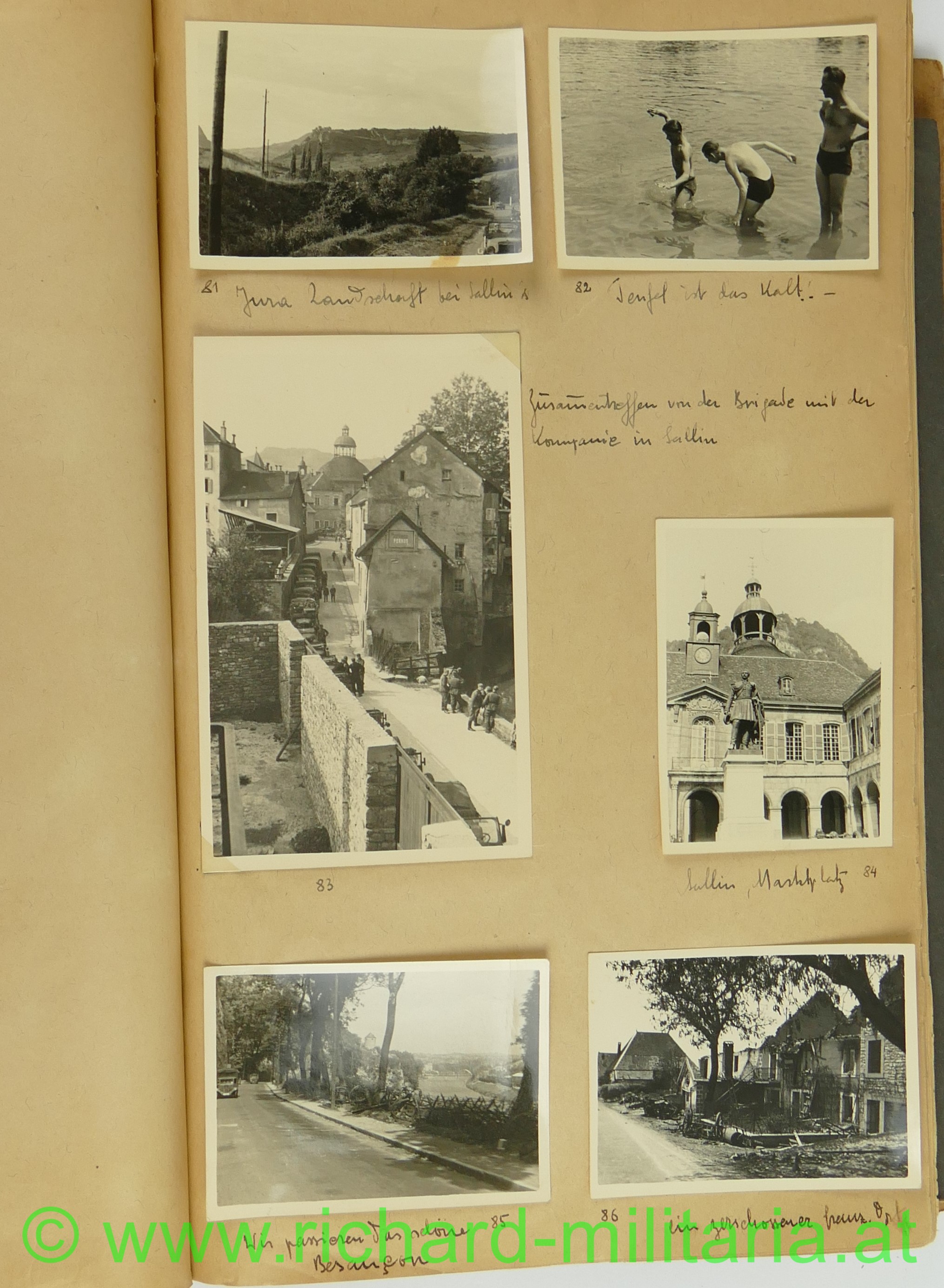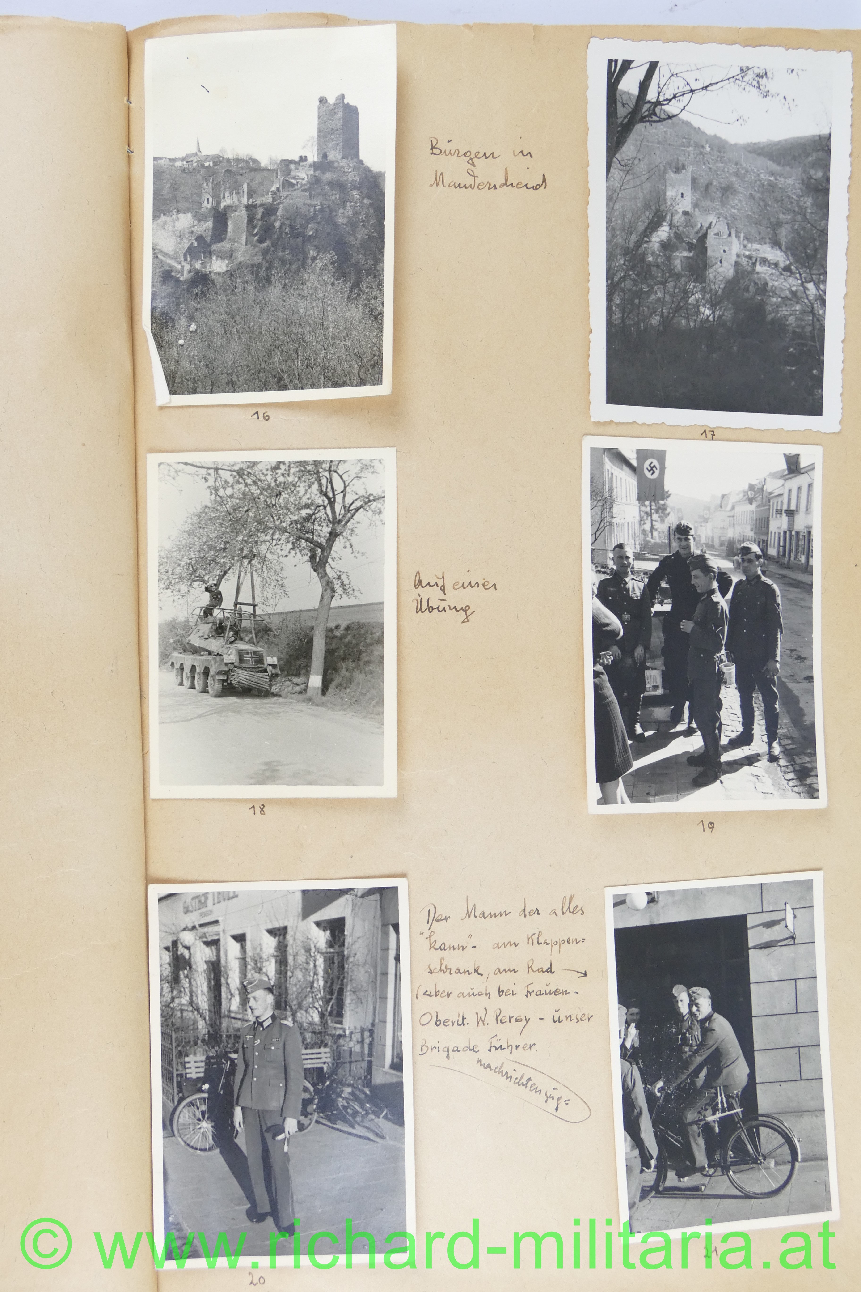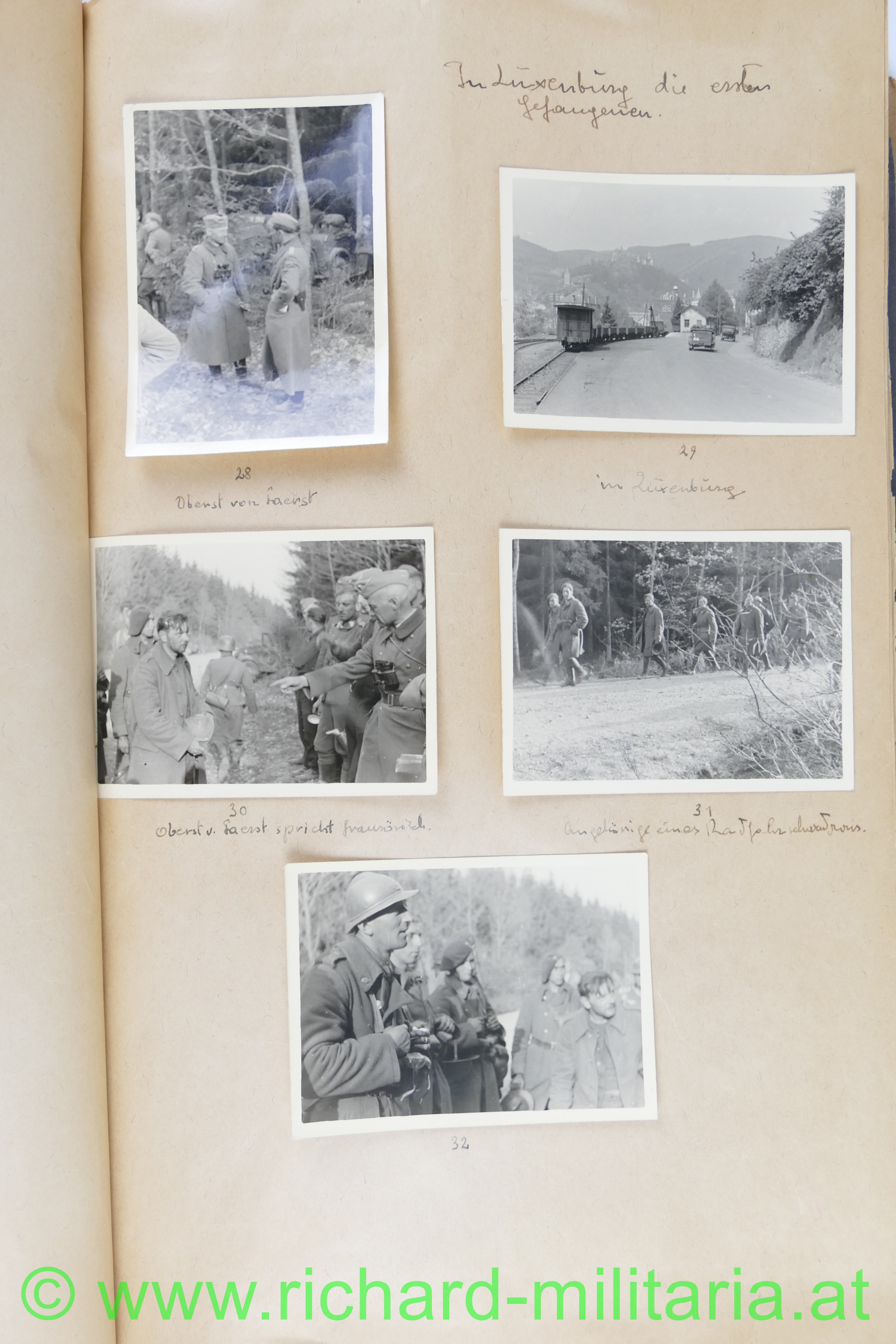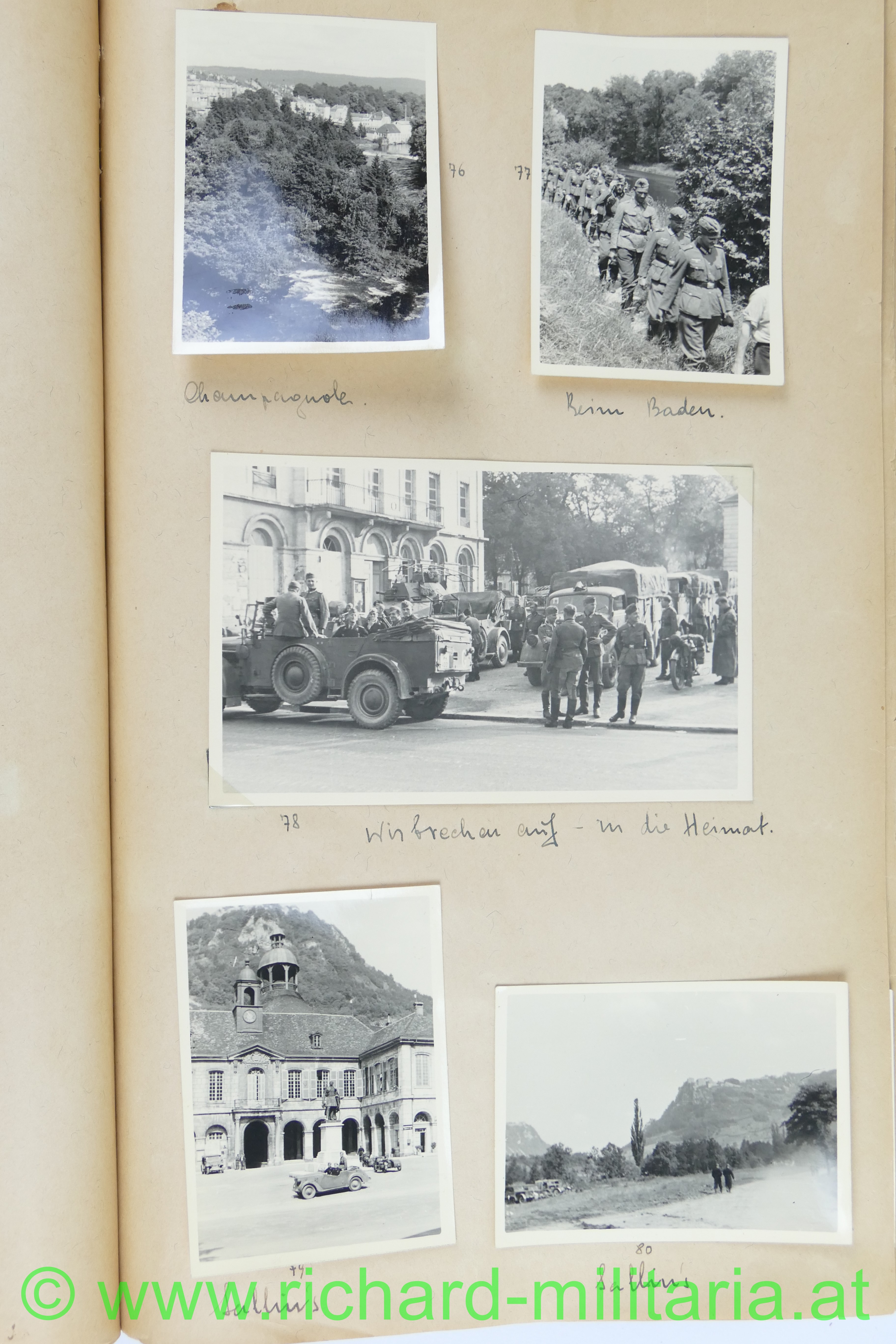 1. Album: Frankreichfeldzug, Siegesparade in Wien, Ausrüstung, Uniformen, deutscher Spähwagen, gefangene Belgier; deutsche Panzer, deutsche PAK, Marschkolonnen, Gefangenentransport, deutsche Soldatengräber, französische Panzer, Kradfahrer, Dornier 17, jubelnde Bevölkerung; Hochformat: 29,5 x 21 cm;