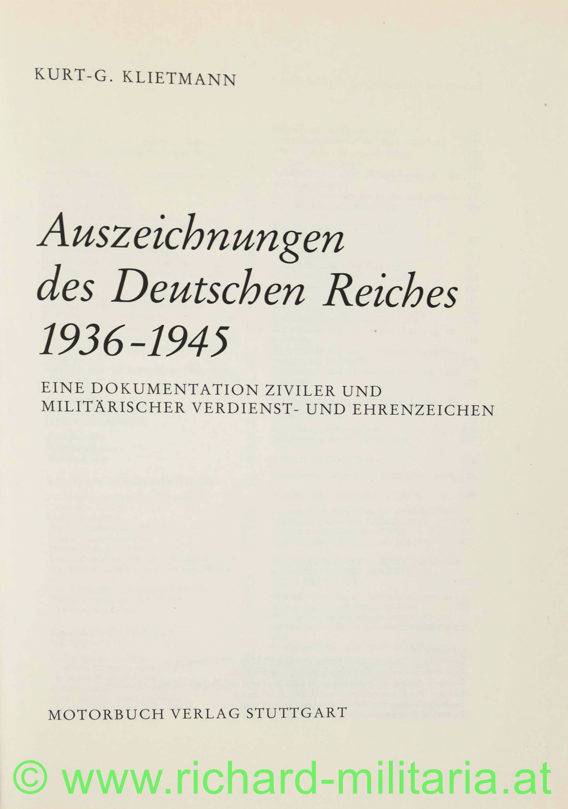 Auszeichenungen des Deutschen Reiches 1936-1945 Klietmann