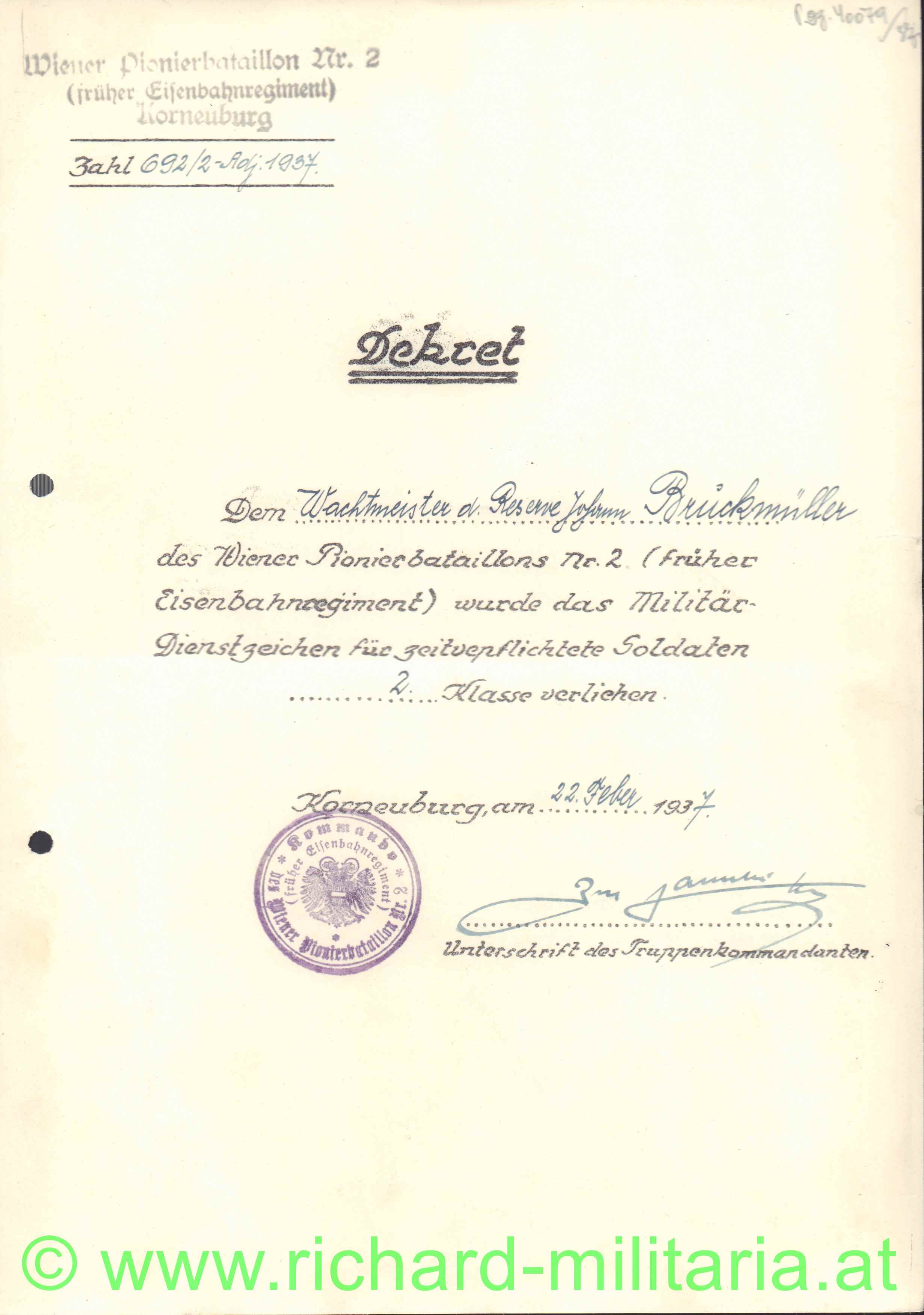 - Dekret zum Militärdienstzeichen 2. Klasse, 22.2.1937