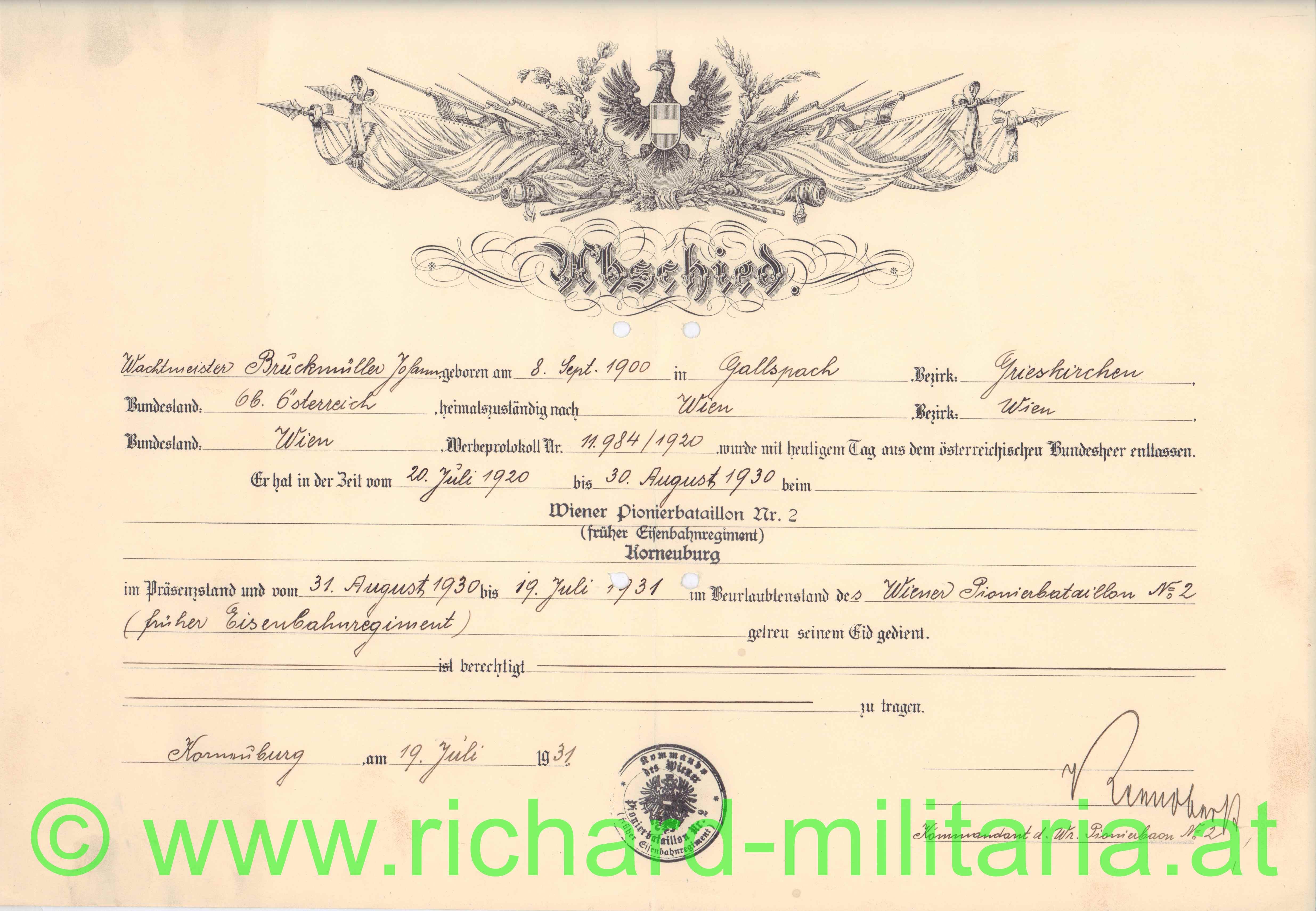 Bundesstaat - Wr. Pionier Baon 2 - Konvolut