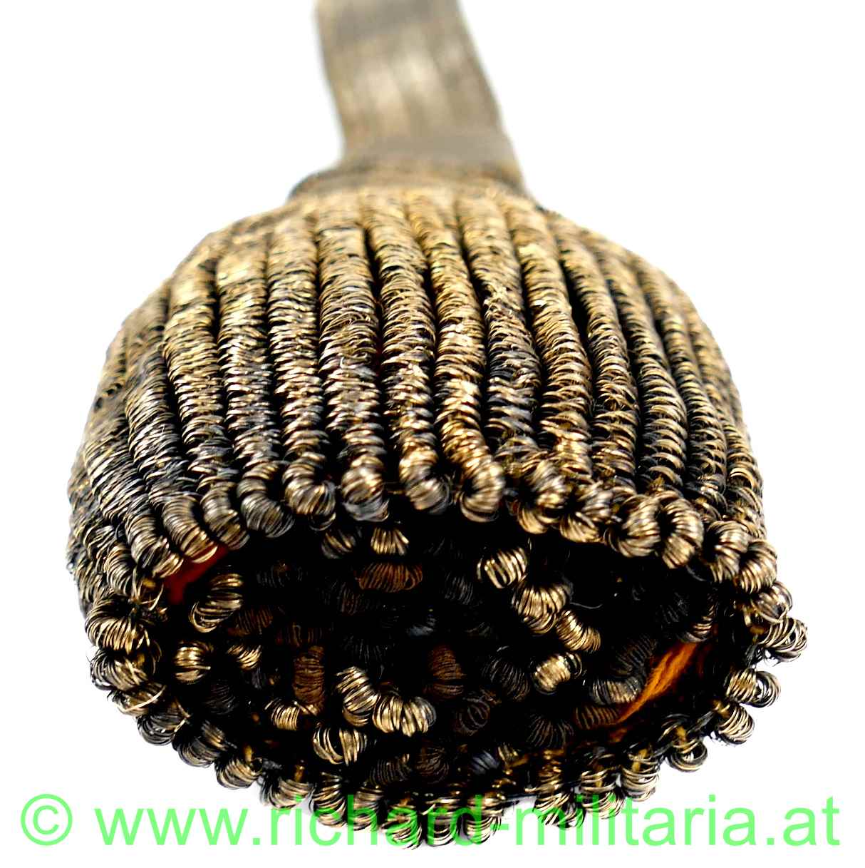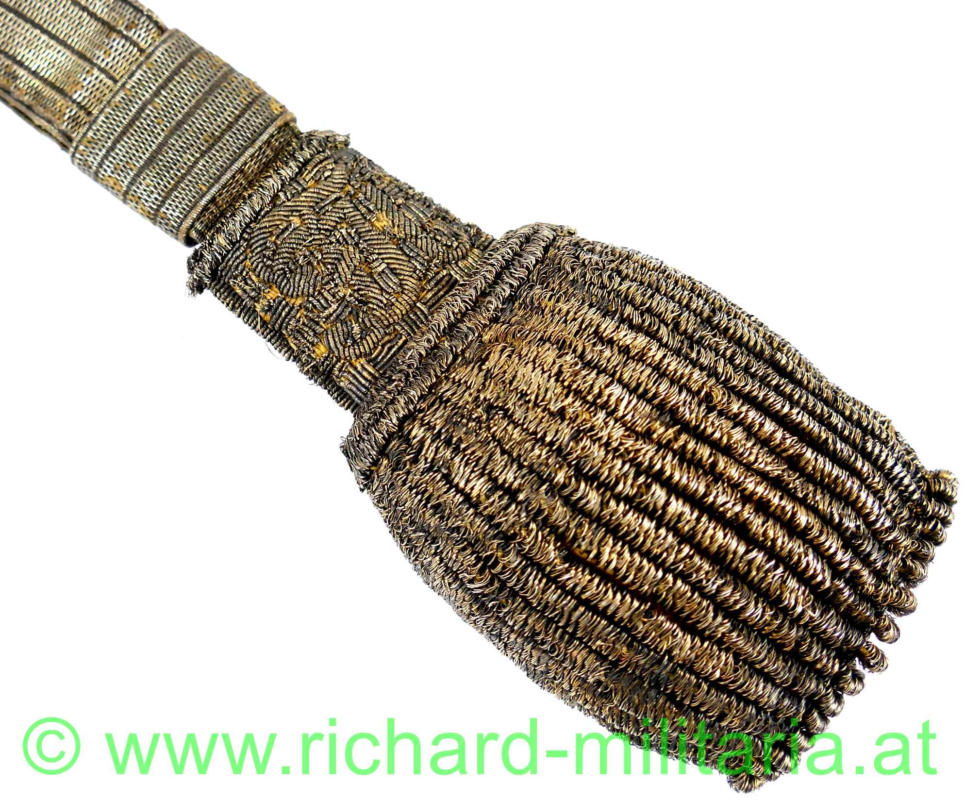 sehr frühes geschlossenes Offiziersportepee für Kavallerie, um 1880/90 (!!!); mit Schiebeschlaufe, typisches "altes" Silbergespinst; leicht gedunkelt und verstaubt