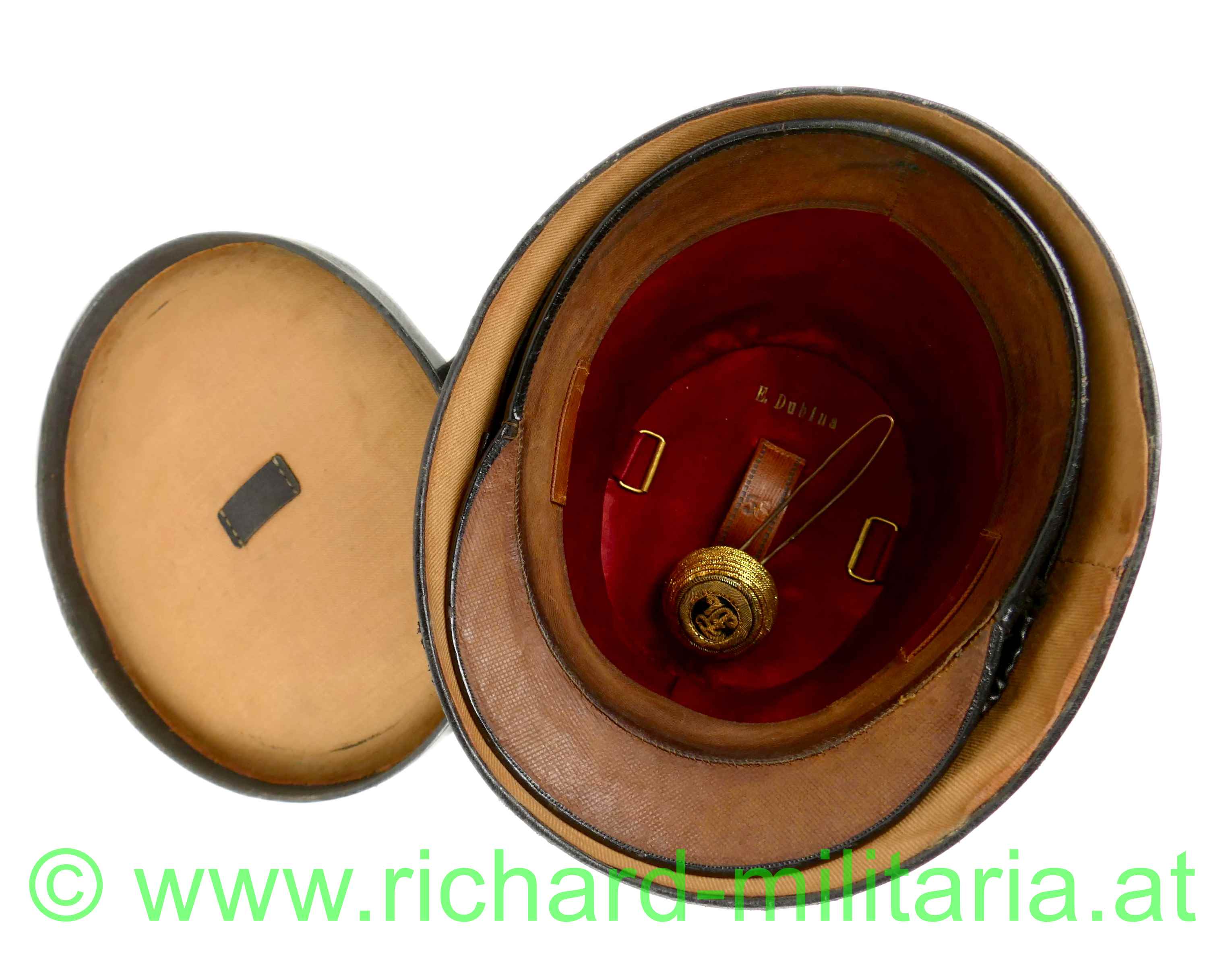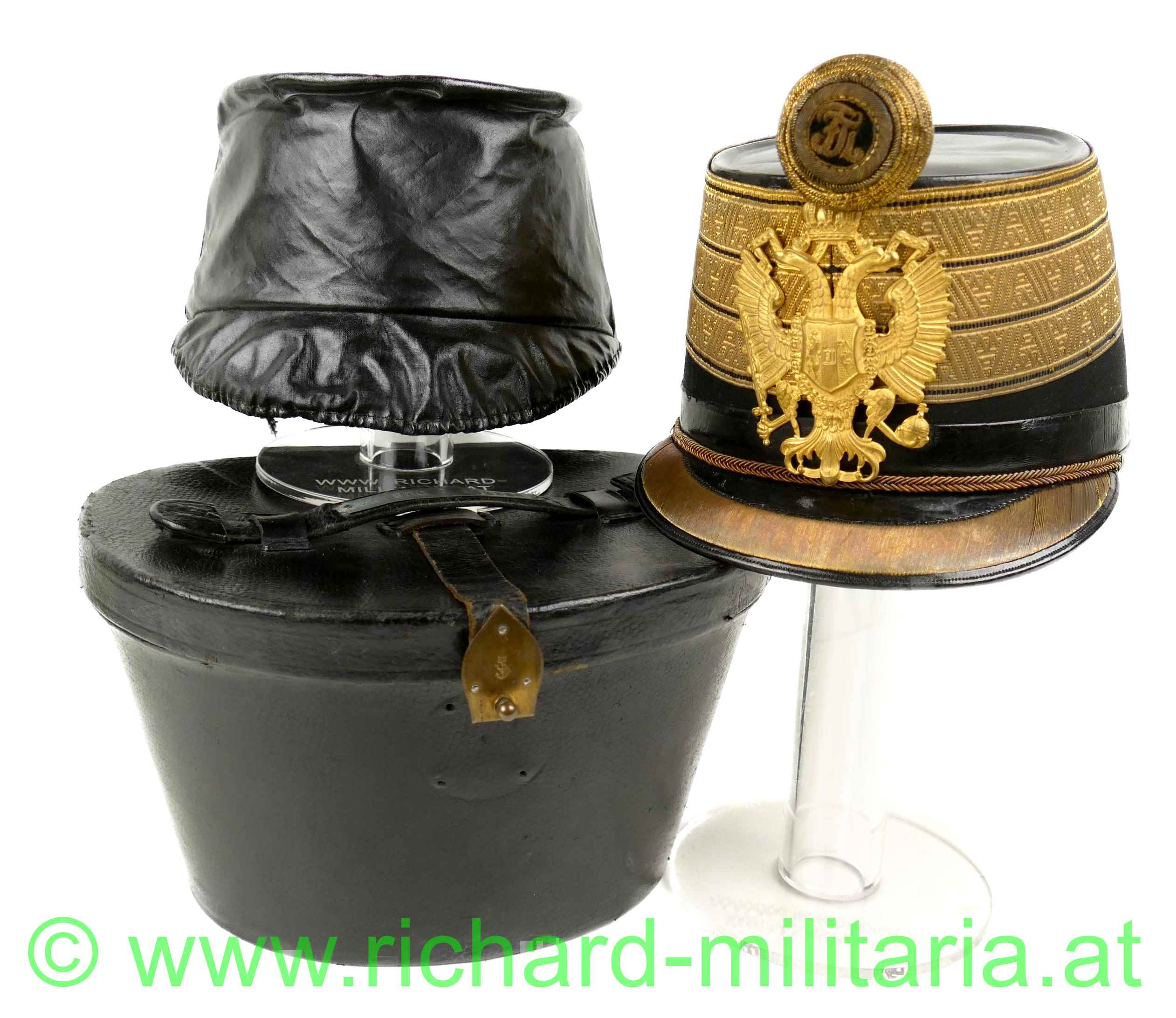 k.u.k. Infanterie-Tschako OBERST DUBINA - mit Koffer u. Wachstuchüberzug