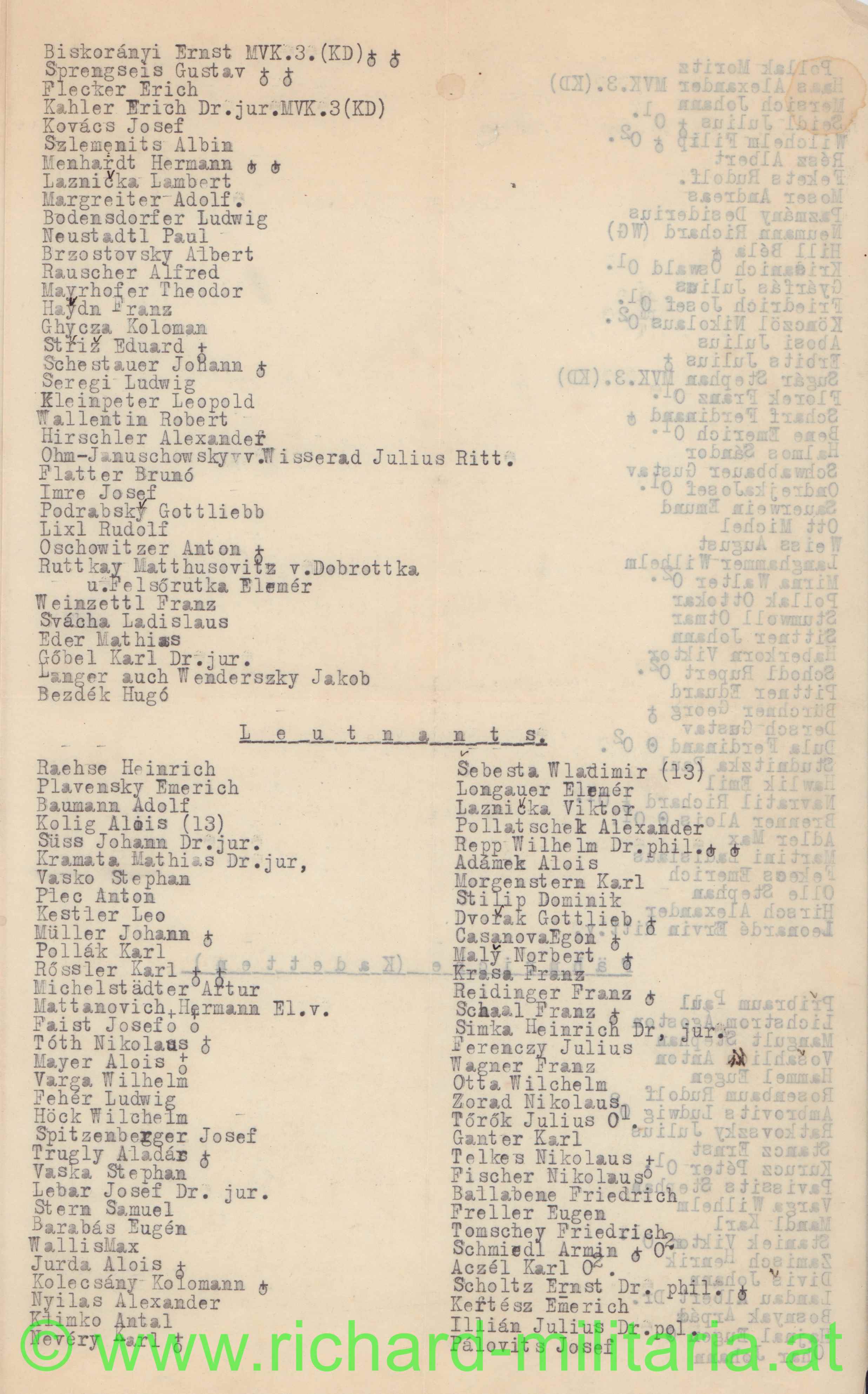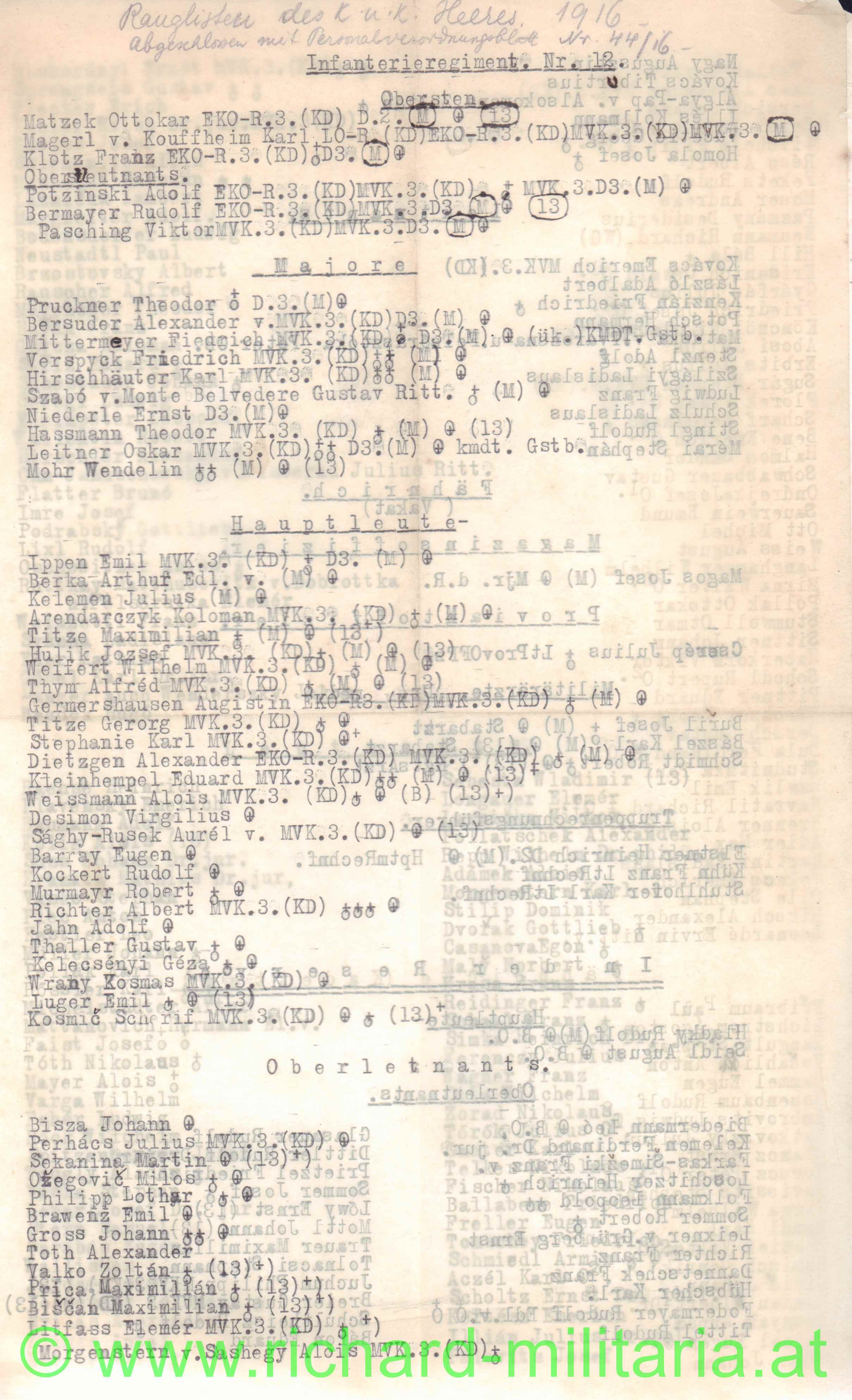 k.u.k. Infanterieregiment Nr. 12 - Ranglisten des k.u.k. Heeres 1916