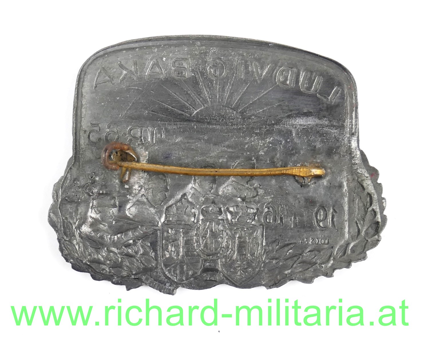 k.u.k. Kappenabzeichen IR 65 - Ludvig Baka 1914-16, Zink, originale Nadel und Nadelhaken,