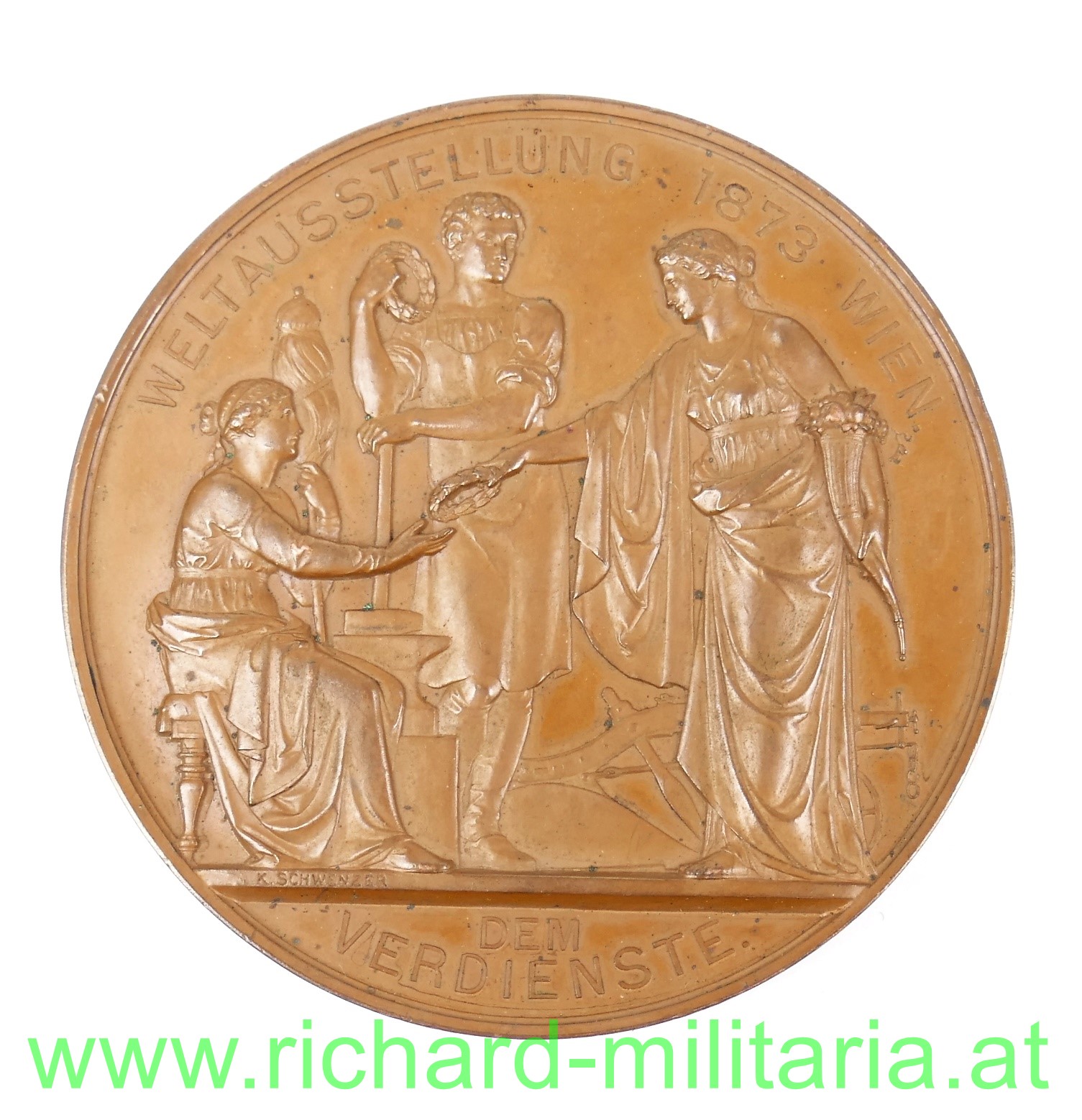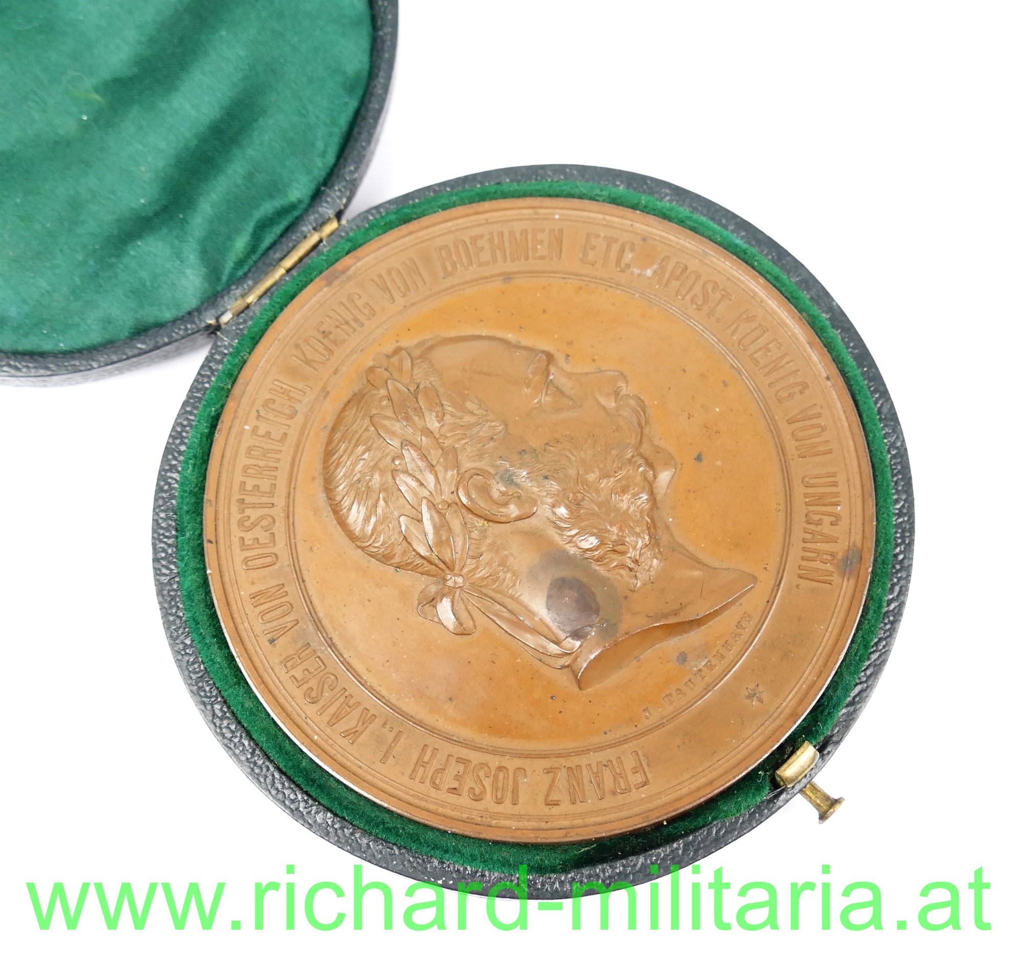 Kaiser Franz Josef - Medaille zur Weltausstellung Wien 1873 "Dem Verdienste"; Bronze, im ORIGINALEN ETUI! Durchmesser der Medaille 7 cm
