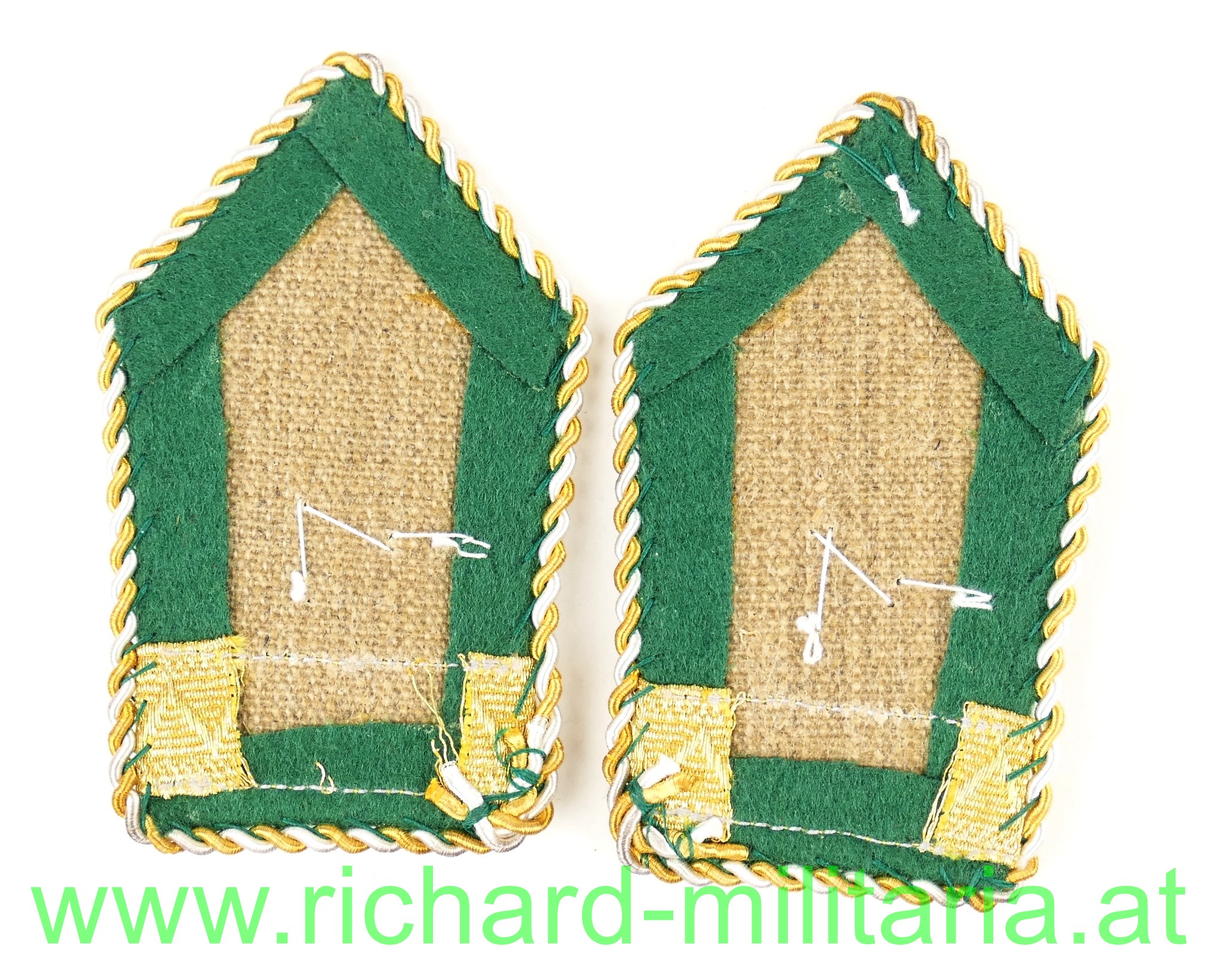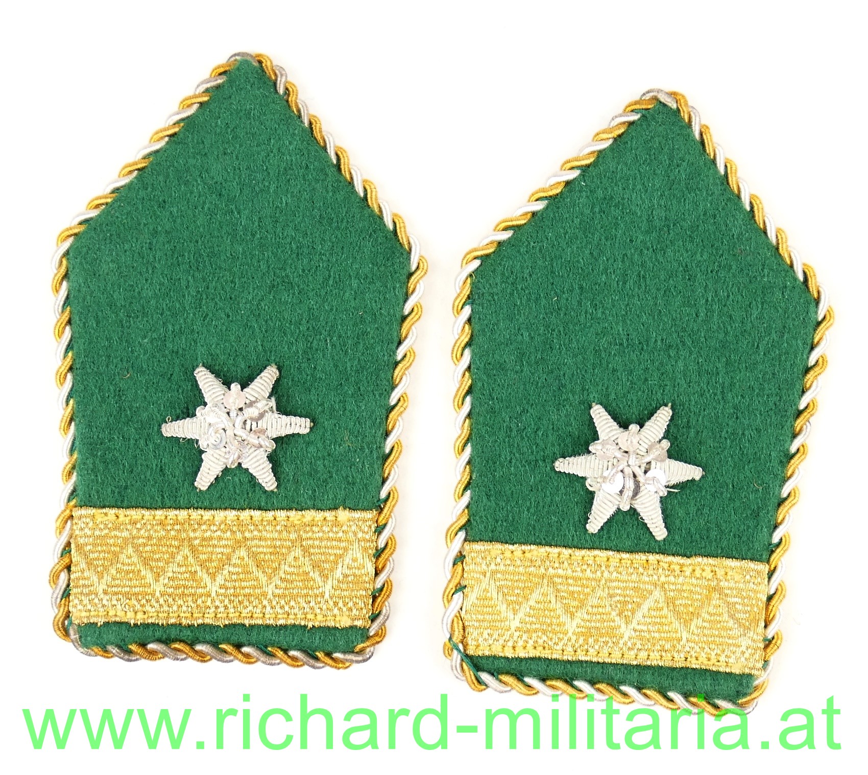 Paar zusammengehörige Kragenspiegel für einen Vizeleutnant - grasgrün - Jäger - im Österreichischen Bundesheer der 2. Republik, sehr guter getragener Zustand