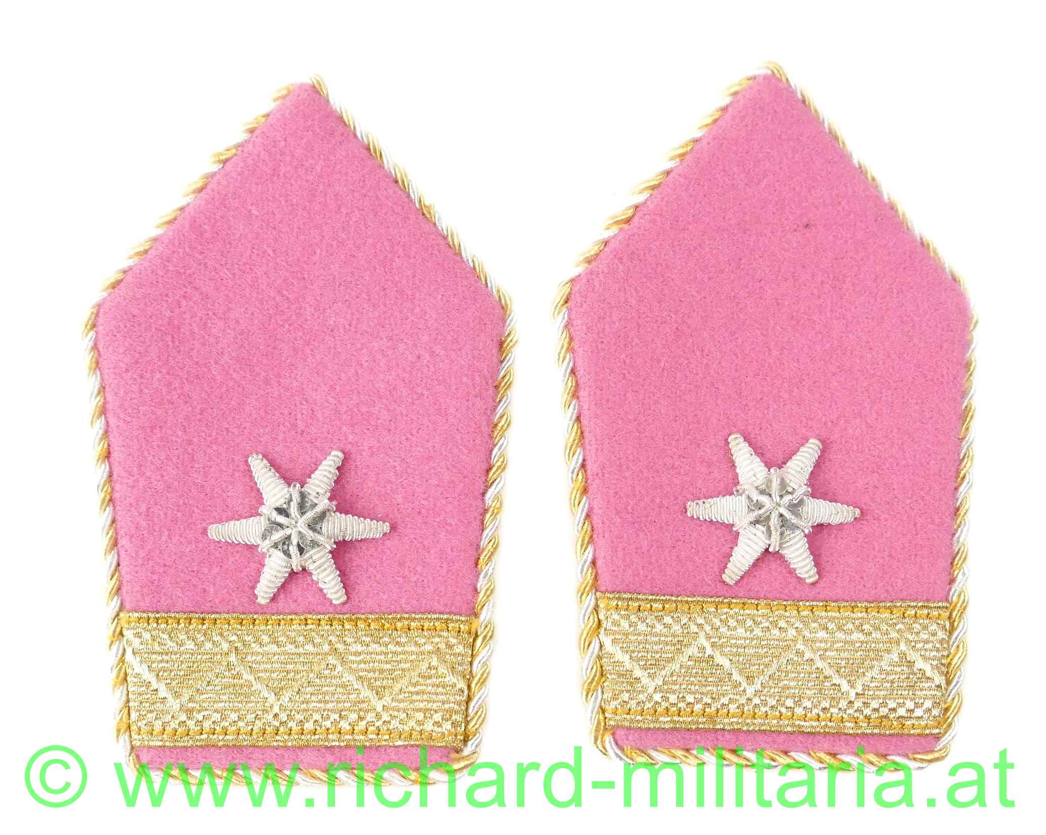 Paar zusammengehörige Kragenspiegel für einen Vizeleutnant im Österreichischen Bundesheer der 2. Republik vor 1975, Waffenfarbe Panzerjäger,