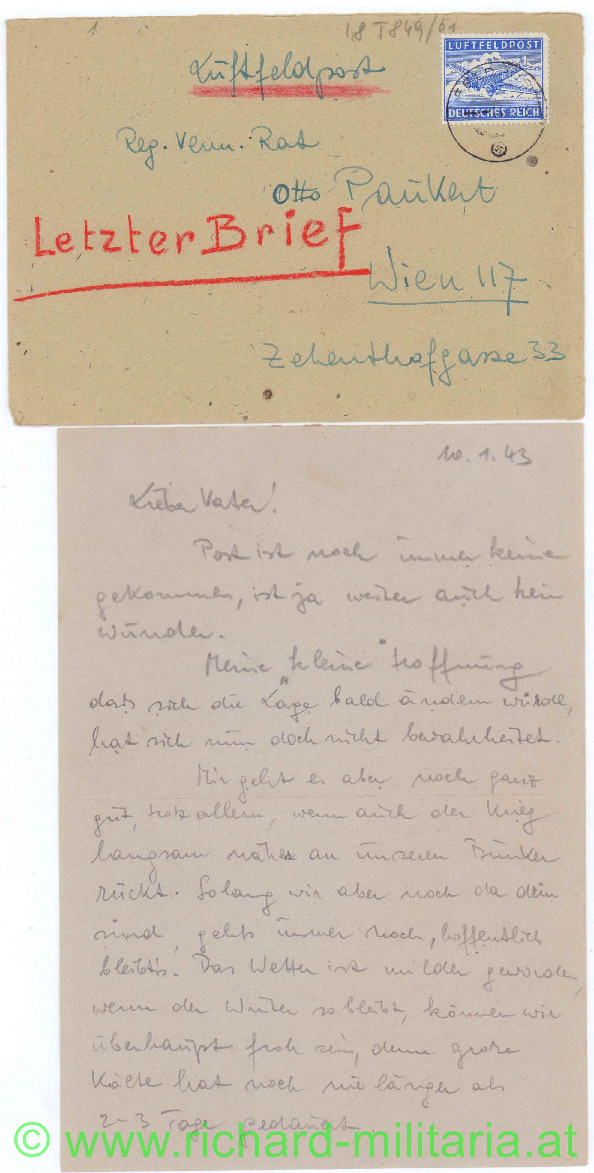 Stalingrad - letzter Brief 21.1.43 - Todeserklärung von 1962