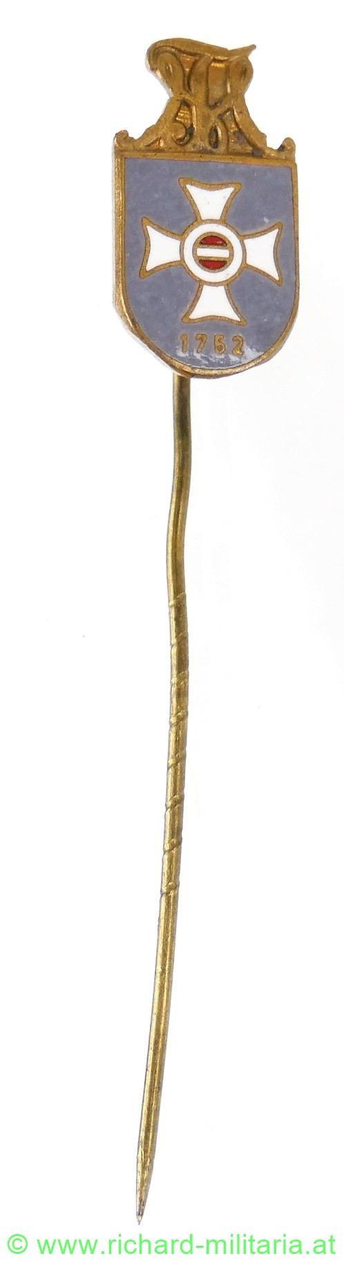 Theresianische Miltiärakademie - Anstecknadel, vergoldet und emailliert, Länge 60 mm - Abzeichen 18mm