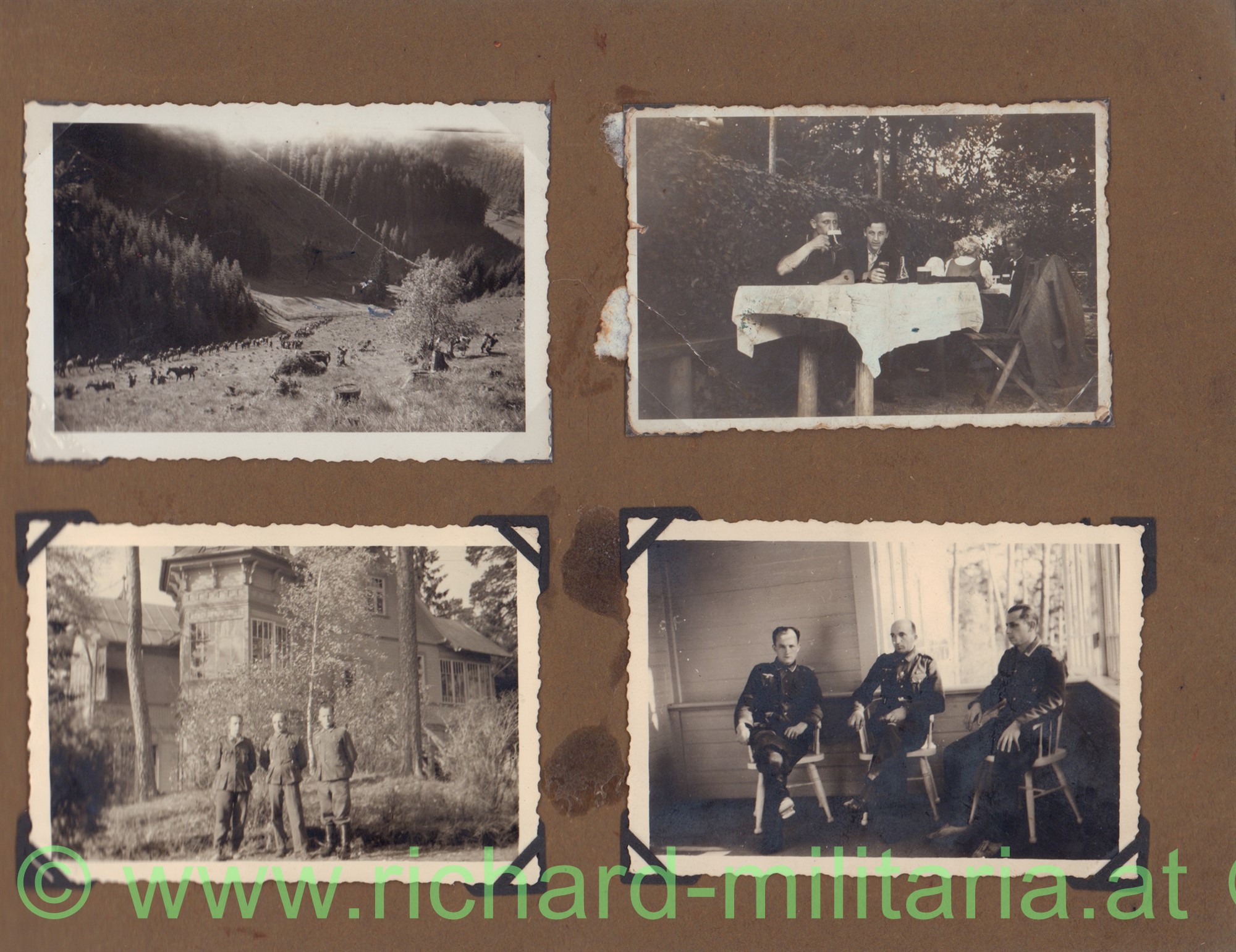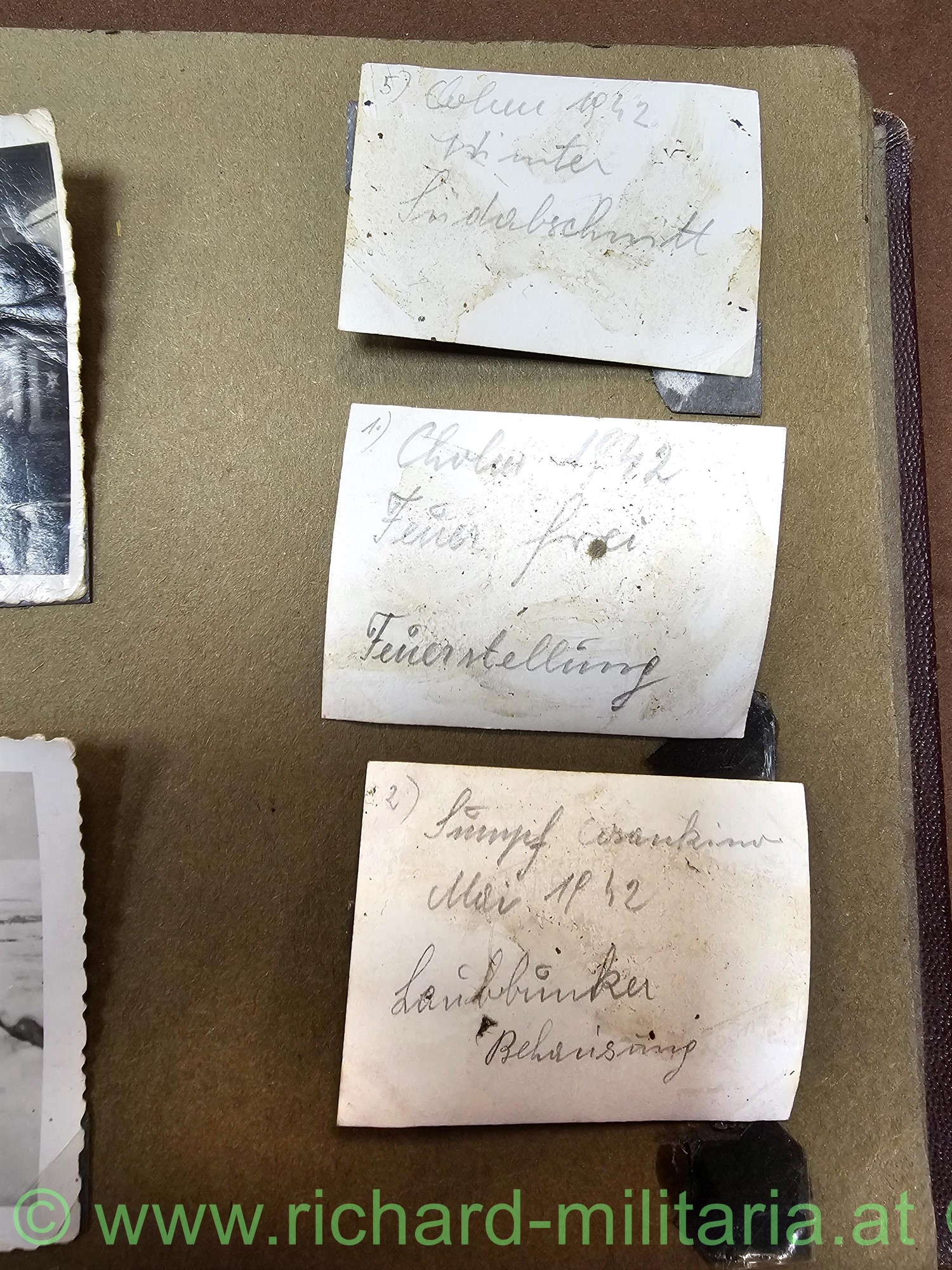 Fotoalbum von Herbert Till; privates Album - am Umschlag mit Wehrmachtshelm und silbernem Schriftzug "Meine Kriegserinnerungen"; insgesamt 65 Fotos und eine Postkarte - einige Fotos auf der Rückseite beschriftet mit CHOLM; dabei ein schönes Trägerfoto mit CHOLMSCHILD; Format des Albums 25,8 x 17,5 cm