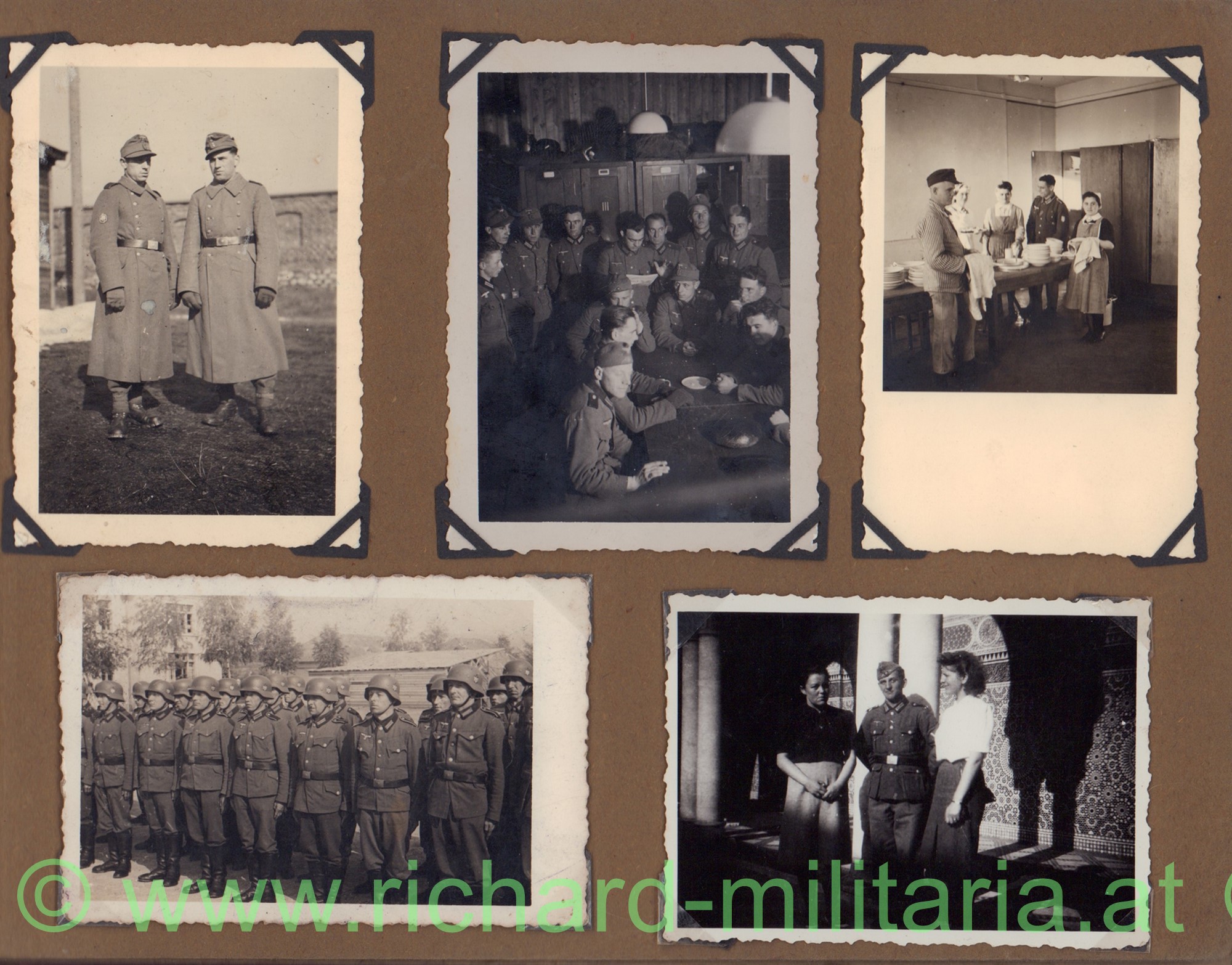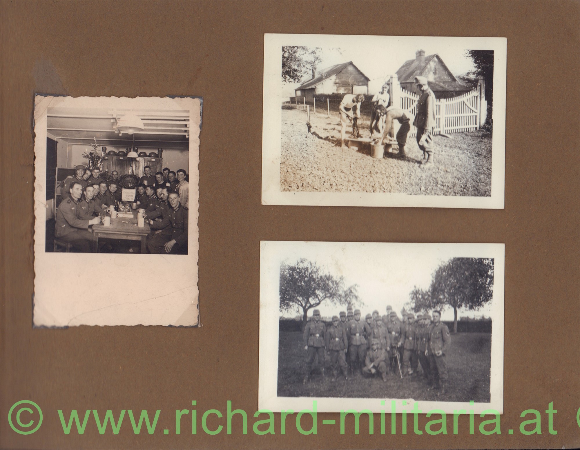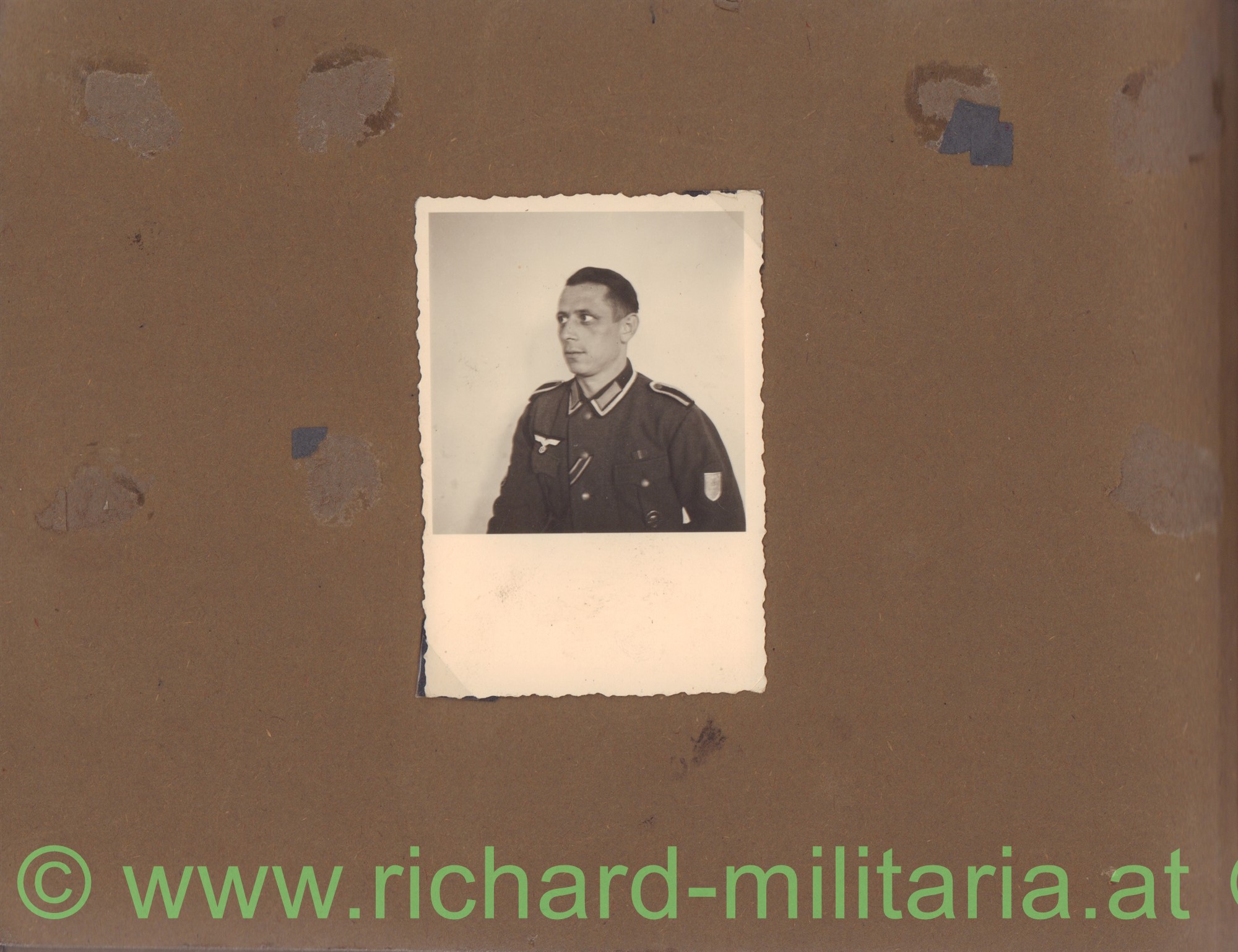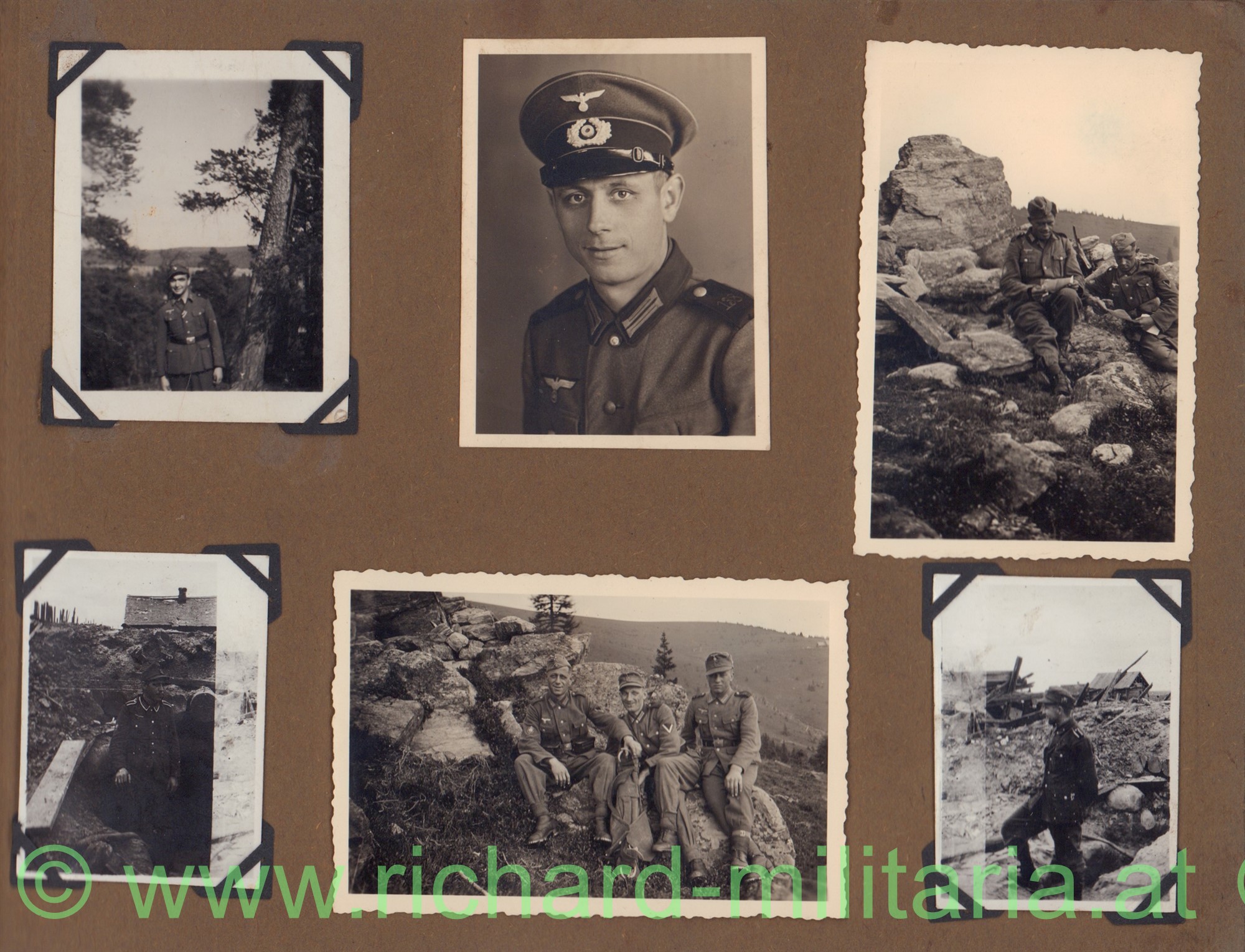 Dabei noch ein großes handcoloriertes Foto als Unteroffizier, sein Arbeitsbuch, private Familienfotos und ein händisch geführtes Notizbuch mit Wehrmachtseintragungen:
