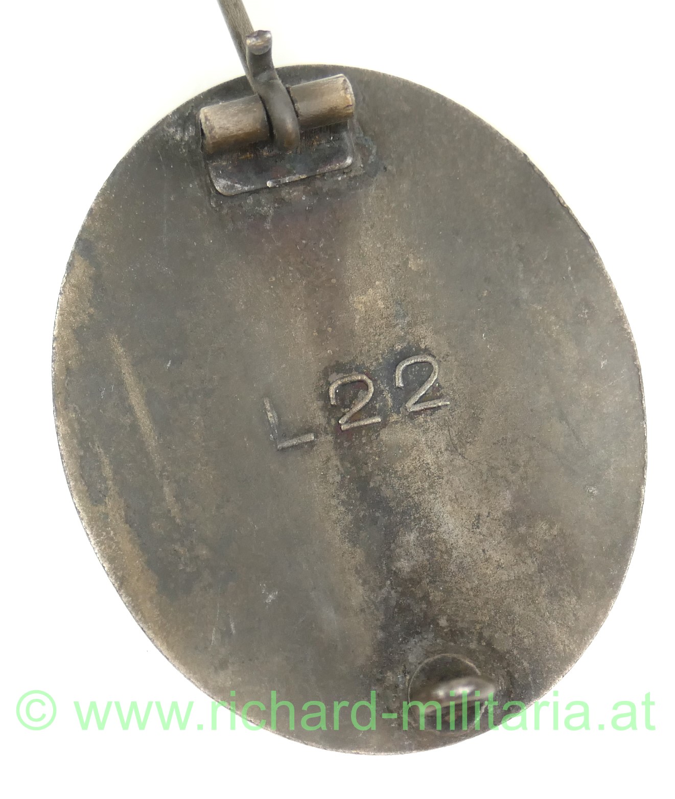 Verwundetenabzeichen in Silber, 2. Modell, Zink mit Hersteller L22; Versilberung vergangen, ohne Beschädigungen oder Reparaturen