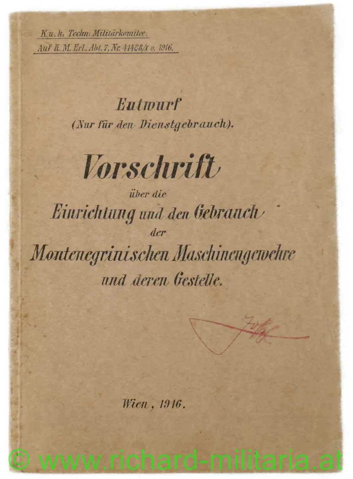 Vorschrift - Einrichtung u. Gebrauch d. Montenegrinischen MG's