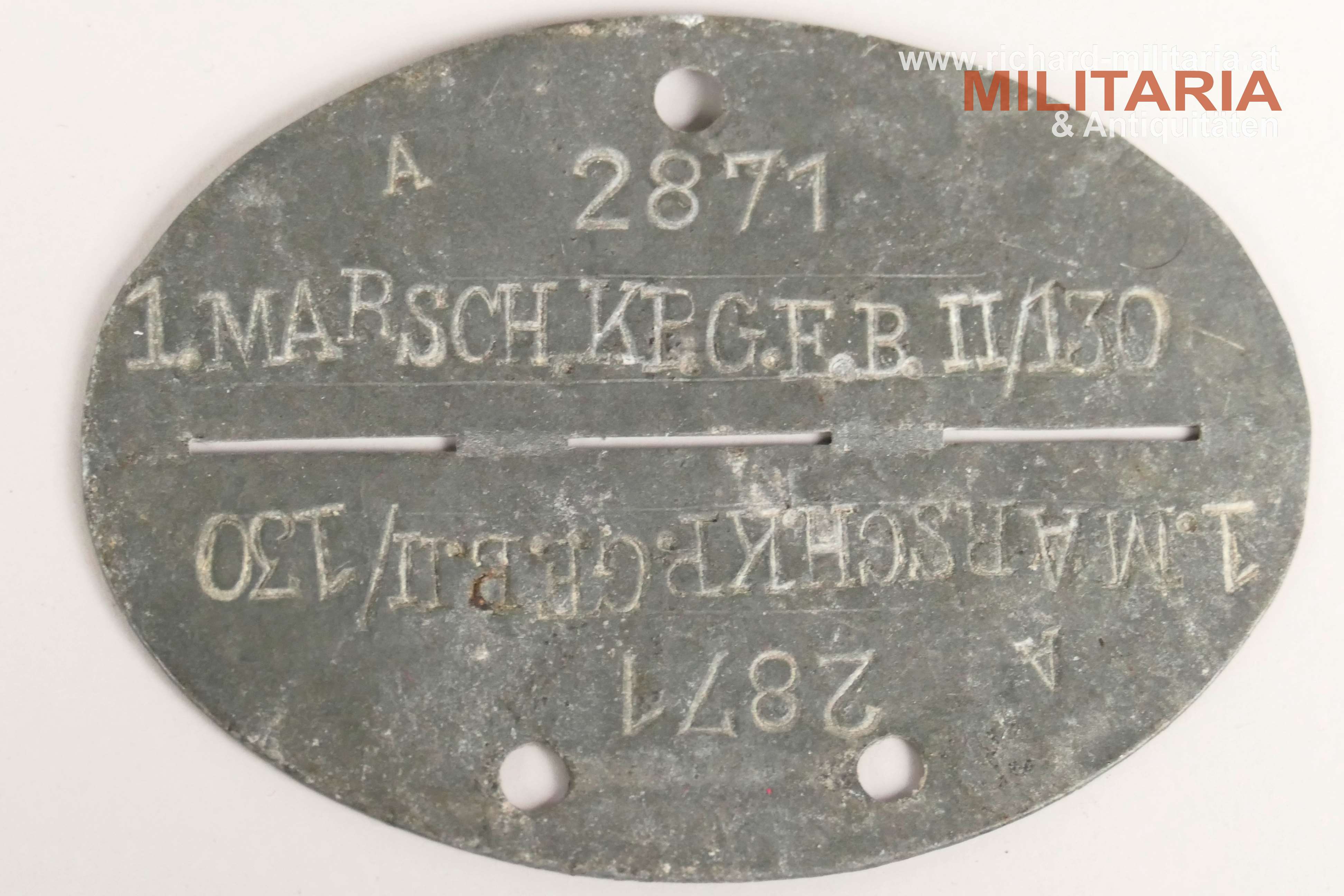 Wehrmacht Erkennungsmarke; Zink; 1. Marsch. KP. G.E.B. II/130 (Gebirgsjäger-Ersatz-Bataillion); guter Zustand