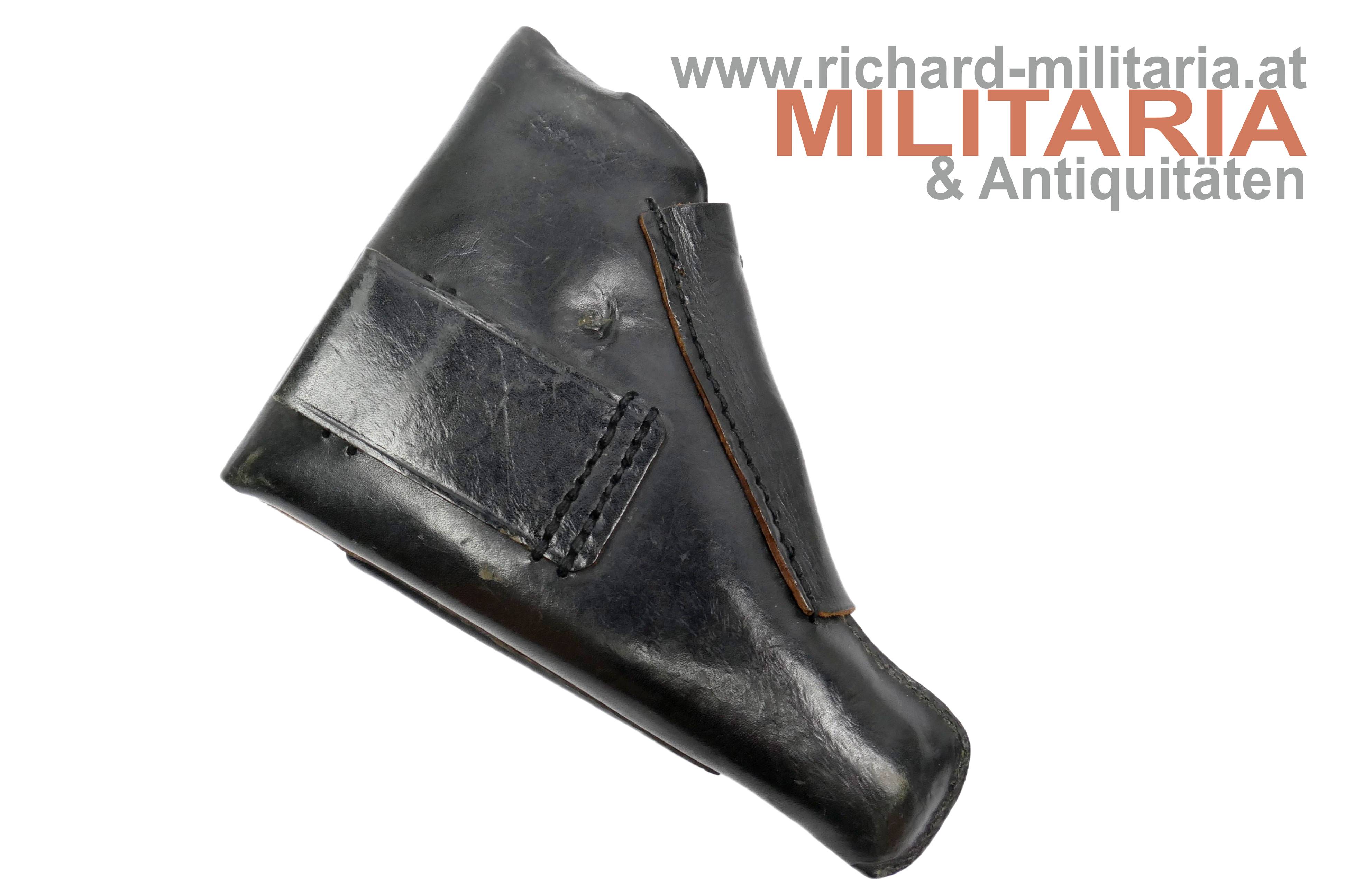 Wehrmacht - Pistolentasche Kal. 7,65mm, schwarzes starkes Leder, alle Nähte fest; auf der Rückseite breite Trageschlaufe (typisch deutsche Ausführung aus dem 2. Weltkrieg), keine Abnahme- bzw. Herstellerstempel;
