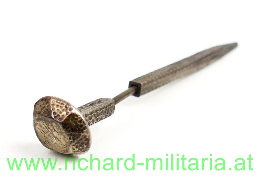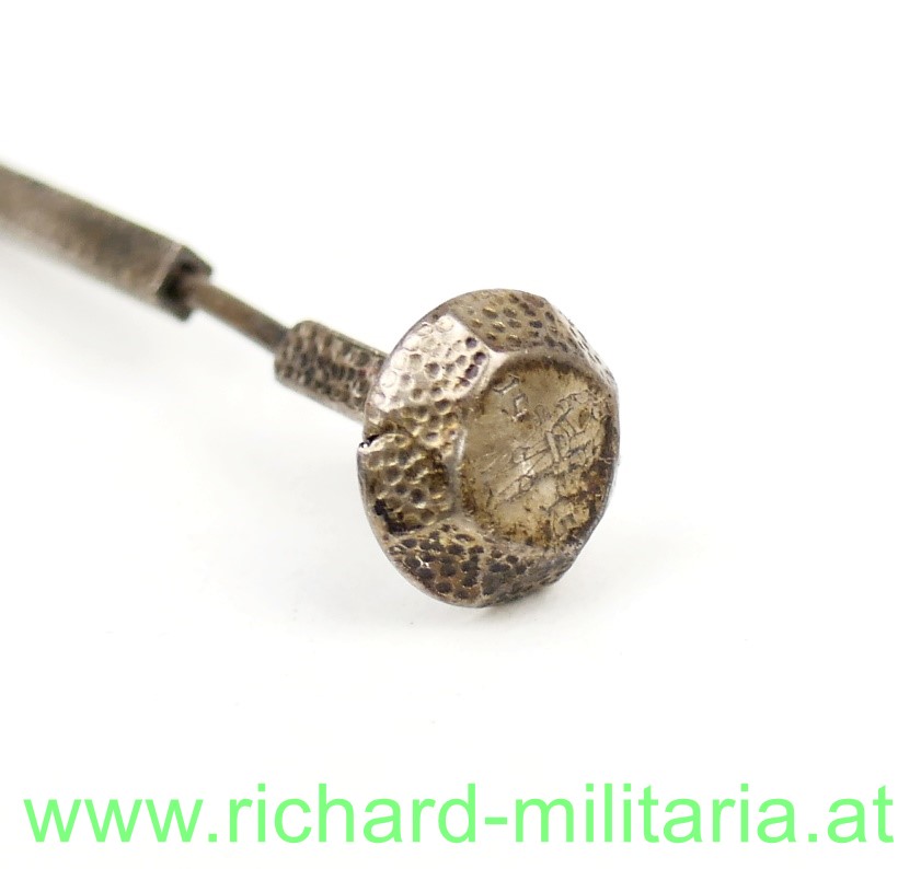 Wehrmann in Eisen 1915 - Silberner Nagel - dieser mehrfach silber- und meisterpunziert; am Nagelkopf der "Wehrmann in Eisen 1915" eingraviert, Nagel lässt sich nicht mehr ganz in die "Scheide" stecken, da er leicht verbogen ist