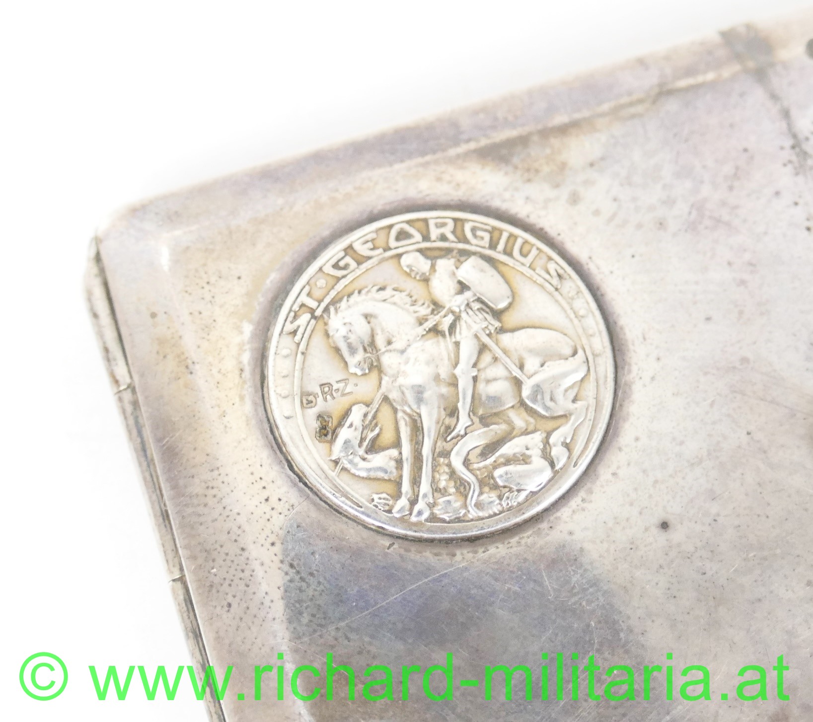 Produktinformationen "Zigarettenetui St. Georgius "Infanterieequitation 1914" SILBER"