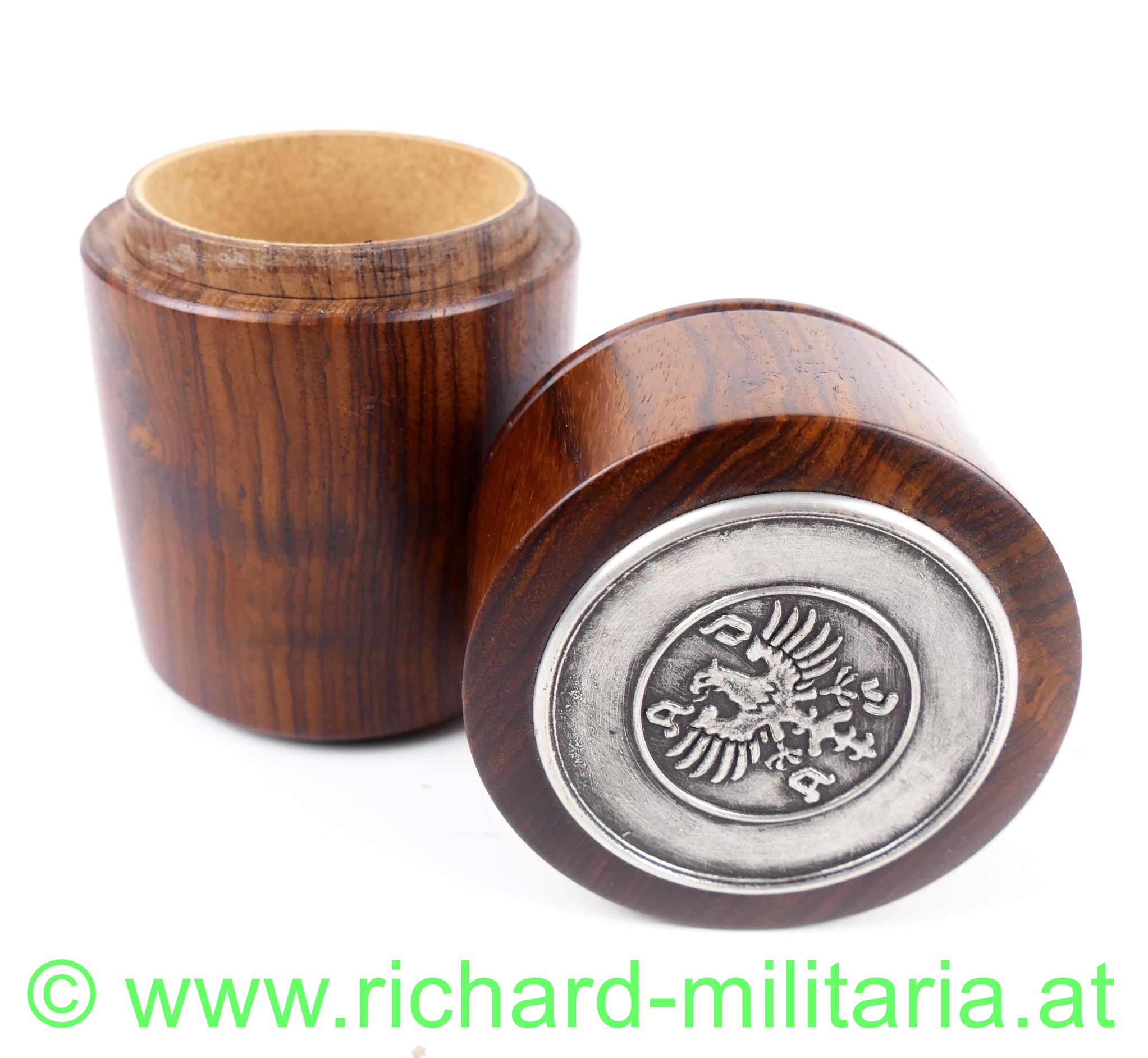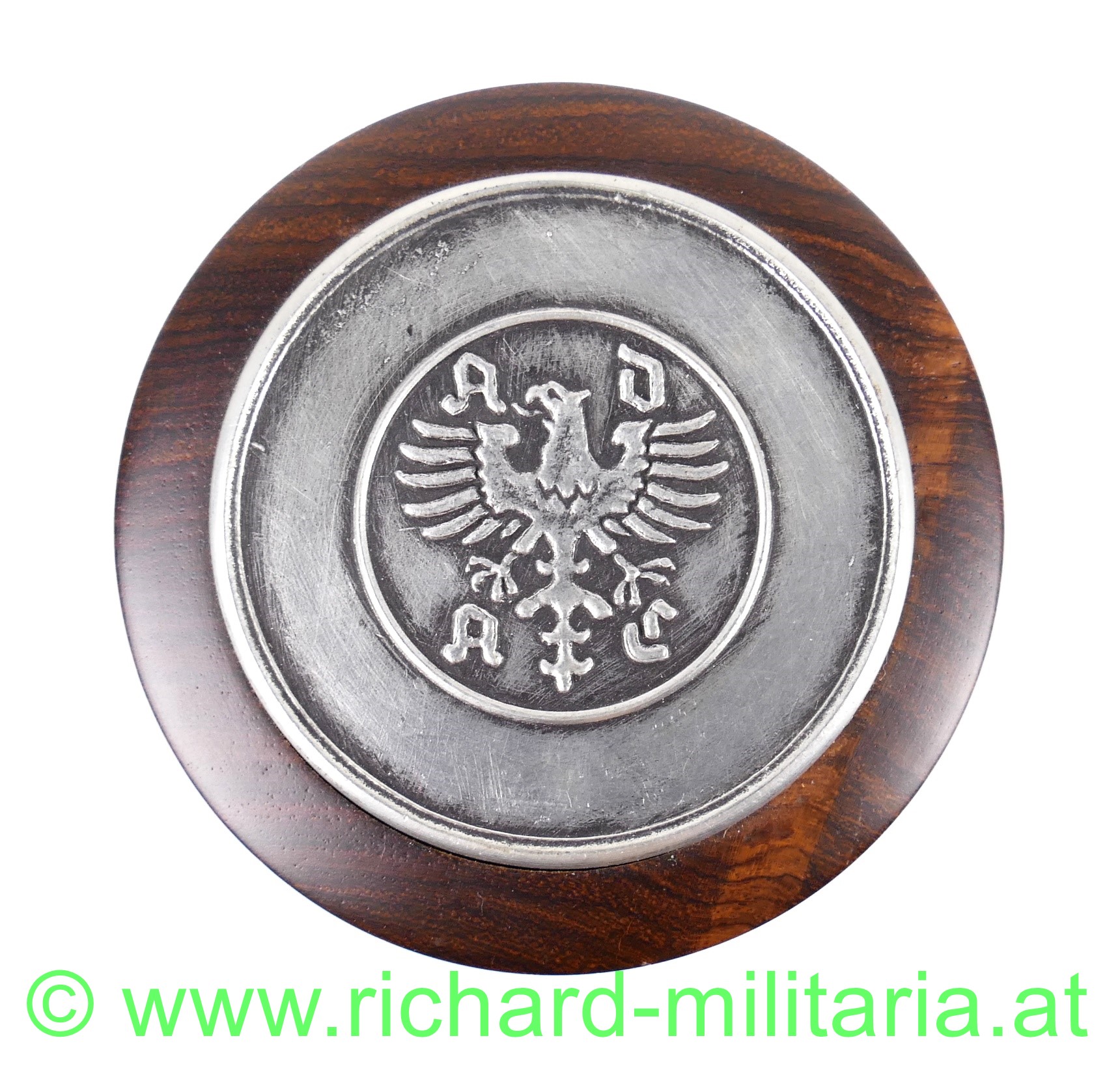 Becher aus Holz mit Metalleinarbeitung auf der Oberseite - Adler mit ADAC in den Ecken; in sehr gutem einwandfreien Zustand